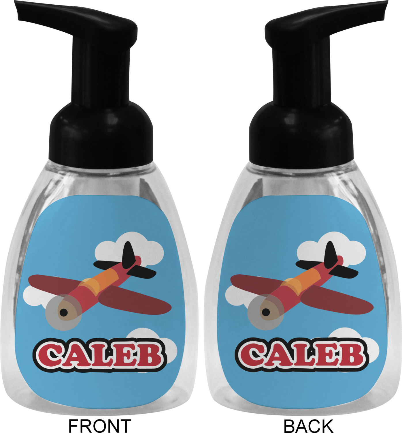 This soap dispenser is made of a robust plastic and has a clear base. The included soap pump is available in black or white color. This dispenser is 6.5 inches tall, 3 inches wide, and 2 inches deep. We display your customized designs on the front and back sides of these foaming hand soap dispensers.