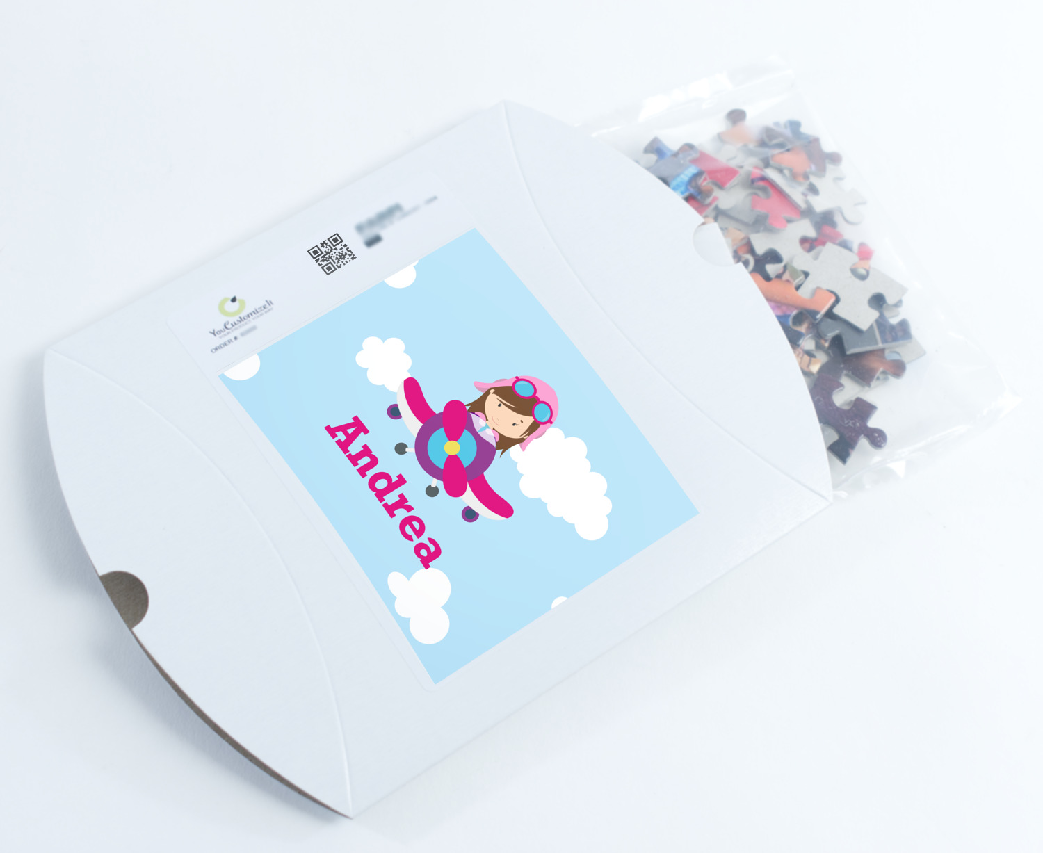 You can also upload your logo or art that you or your kids drew. To create more challenging jigsaw puzzles, you can create a pattern from with your logo or artwork. You can also add other elements such as text or personalization.