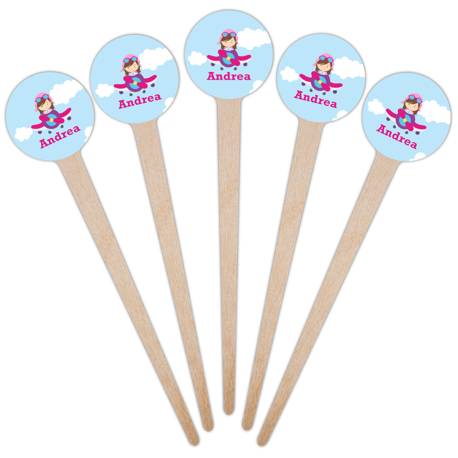 Aviation Designs for 4" Round Wooden Food Picks - Double-Sided