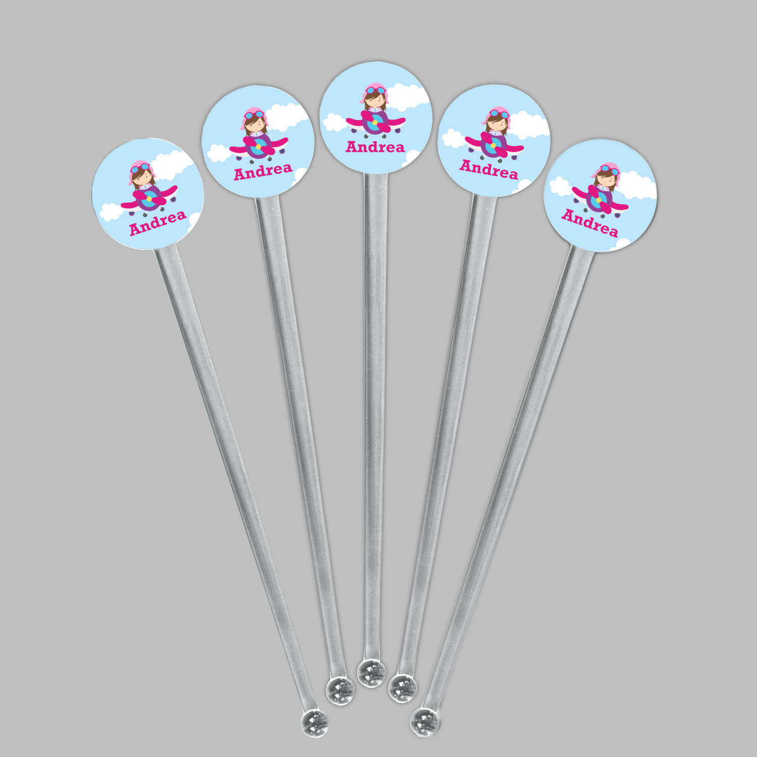 Aviation Designs for 7" Round Plastic Stir Sticks - Clear