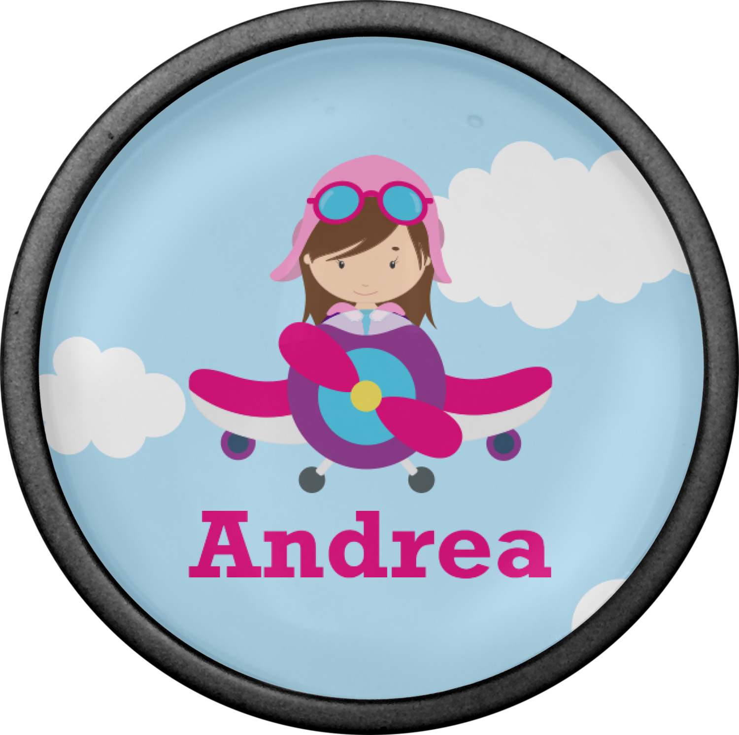 Do you have a little girl that loves planes? Soaring through on a backdrop of a beautiful blue cloudy sky is our fun flying aviator in the cockpit if her own personal plane brightly colored in shades of pink, purple, and blue. Don't forget to add that special touch by customizing the design with your little girl's name.