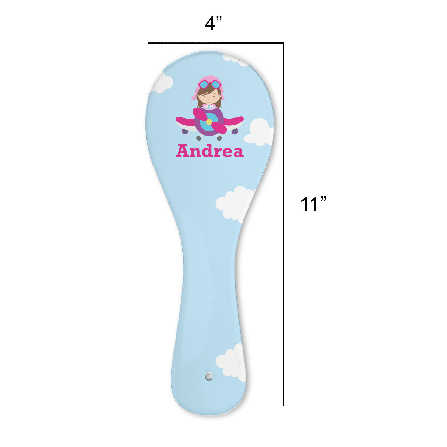 Do you have a little girl that loves planes? Soaring through on a backdrop of a beautiful blue cloudy sky is our fun flying aviator in the cockpit if her own personal plane brightly colored in shades of pink, purple, and blue. Don't forget to add that special touch by customizing the design with your little girl's name.