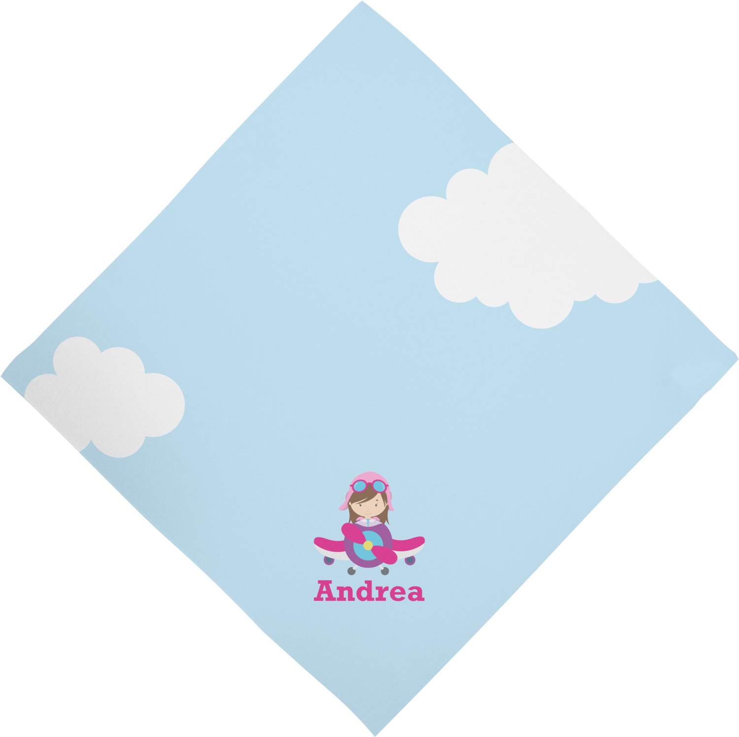 Do you have a little girl that loves planes? Soaring through on a backdrop of a beautiful blue cloudy sky is our fun flying aviator in the cockpit if her own personal plane brightly colored in shades of pink, purple, and blue. Don't forget to add that special touch by customizing the design with your little girl's name.