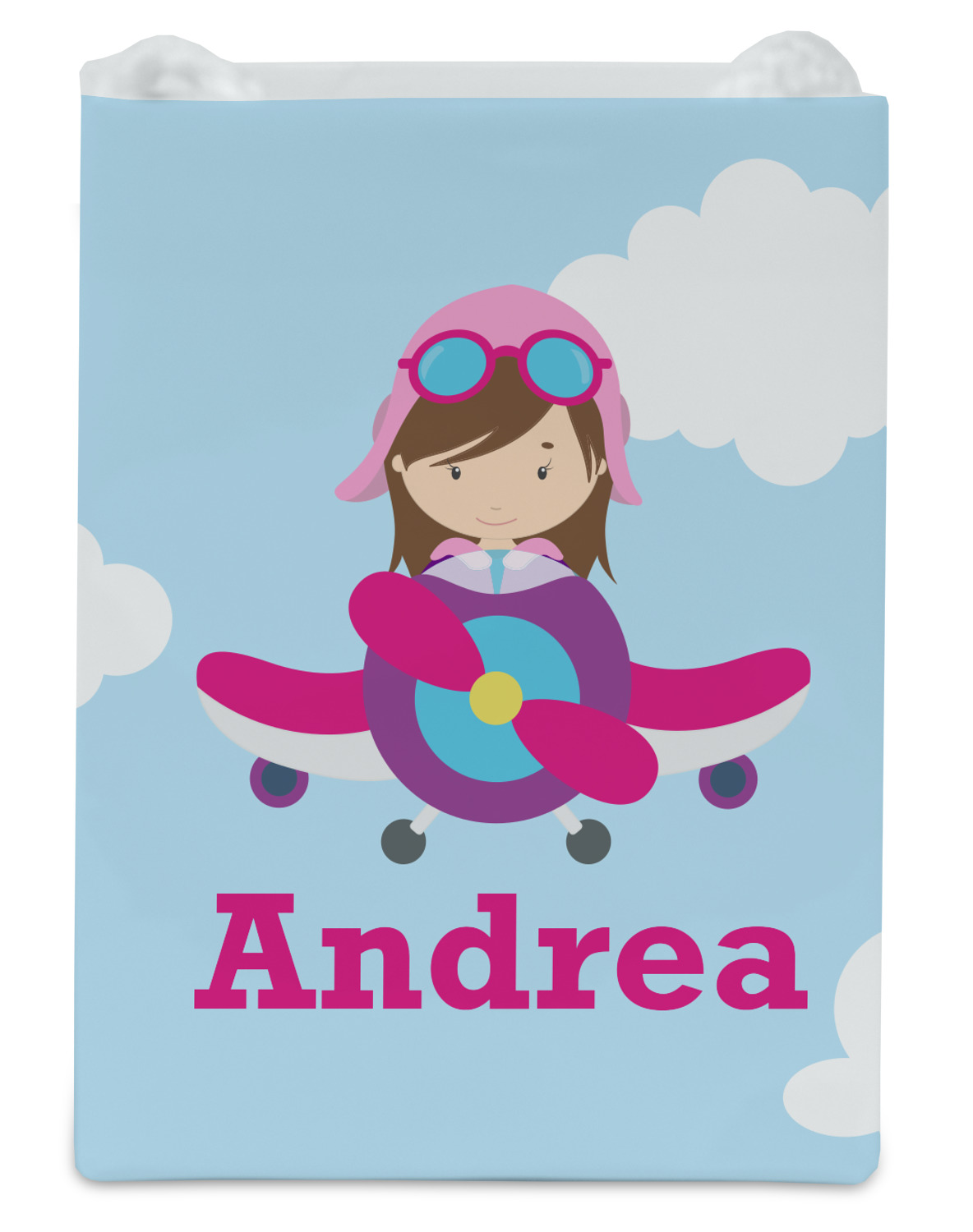 Do you have a little girl that loves planes? Soaring through on a backdrop of a beautiful blue cloudy sky is our fun flying aviator in the cockpit if her own personal plane brightly colored in shades of pink, purple, and blue. Don't forget to add that special touch by customizing the design with your little girl's name.