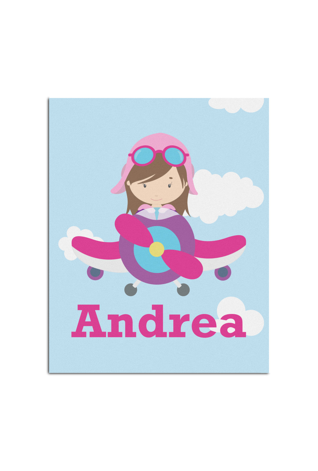 Do you have a little girl that loves planes? Soaring through on a backdrop of a beautiful blue cloudy sky is our fun flying aviator in the cockpit if her own personal plane brightly colored in shades of pink, purple, and blue. Don't forget to add that special touch by customizing the design with your little girl's name.