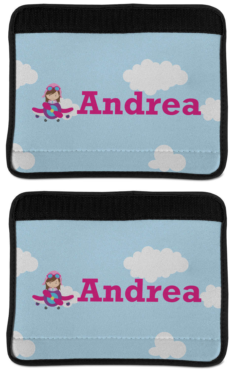 Made from neoprene, our seat belt strap covers wrap around the belt itself and have a Velcro tab for easy attachment and closure. The belt's edges are trimmed with a black polyester for a secure finish. Each cover is 9.5 by 7 inches when open and 9.5 by 2.5 inches when closed. We print your personalized design on the face of the seat belt pad.