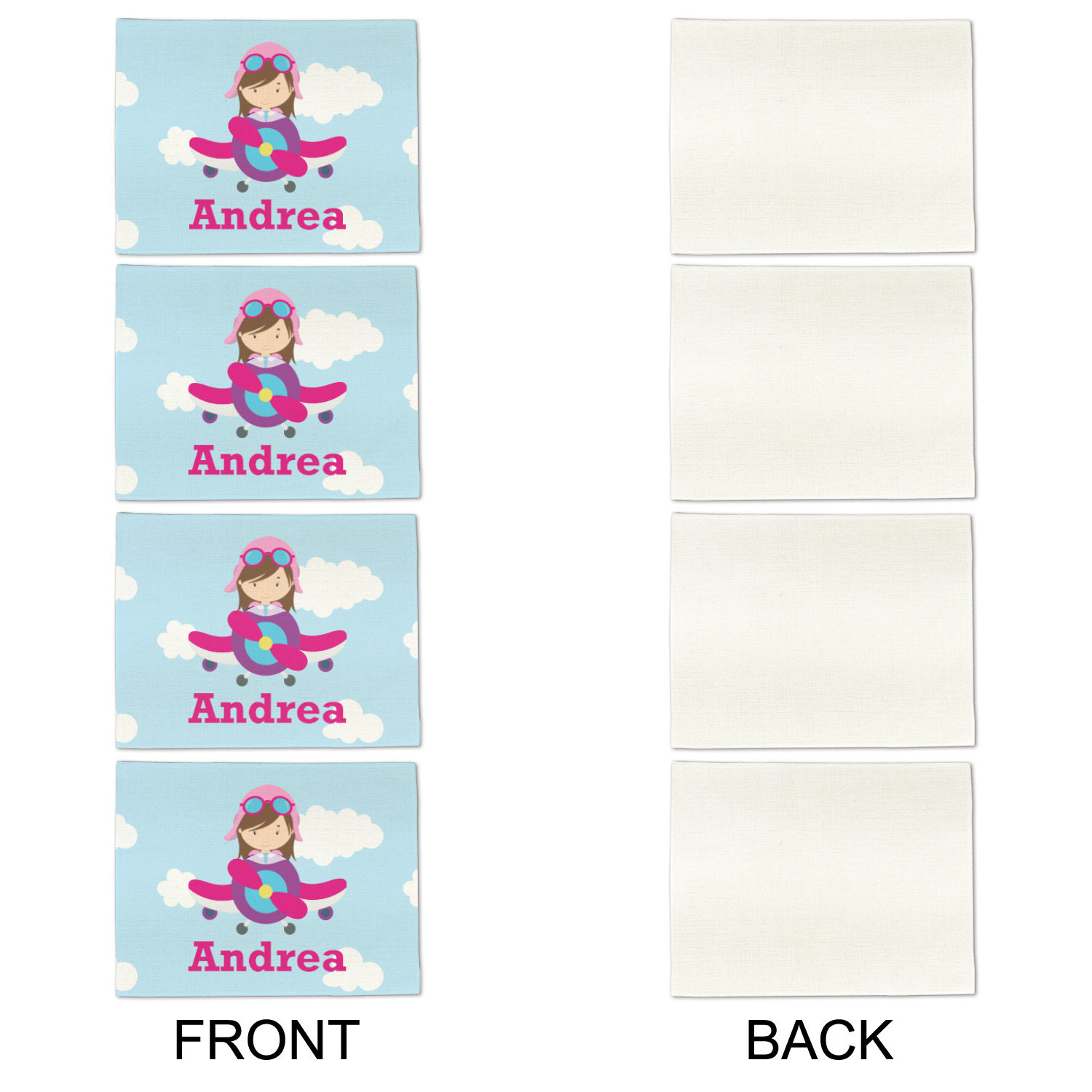 Planes Designs for Single-Sided Linen Placemats - Set of 4