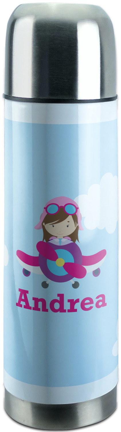Manufactured from stainless steel, this thermos is built durably and double-walled insulated to preserve the temperature of your drink for hours. It also features a screw off lid that is made to also function as a small cup. Upon unscrewing this part of the thermos bottle, a pop-open, pour feature emerges. This feature allows you to slowly pour your beverage into your lid, ensuring a steady, controlled pour into your lid or other cup. With a capacity of 25 ounces, these large thermoses can hold several servings of your favorite beverage. Your customization is displayed all around the bottle with bright, vibrant color.