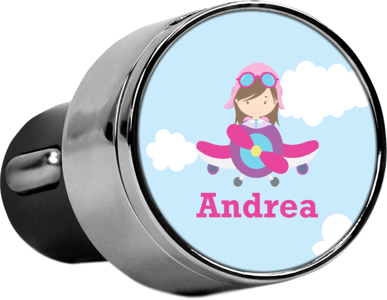 This car charger adapter converts your cars bland cigarette lighter into a decorative, personalized, and operational USB charging port. Made of solid, silver-plated metal, these chargers feature a flip-open lid that both displays your customized design and conceals two USB ports. The metal lid of the USB car charger adapter is 1.5" in diameter and seals due to a small, ingrained magnet on both the charger and its lid. The cigarette lighter insert, itself, is colored black.