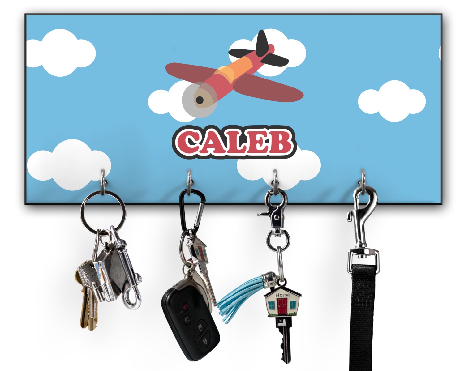 This 11" x 5" key hanger is made of sturdy wood and has four metal hooks lining the bottom. This is the perfect size for a family with several drivers. Not only can you hang keys on it though, but pet leashes and other small items. The board is black on the sides and back and is printed with the design of your choice on the front.