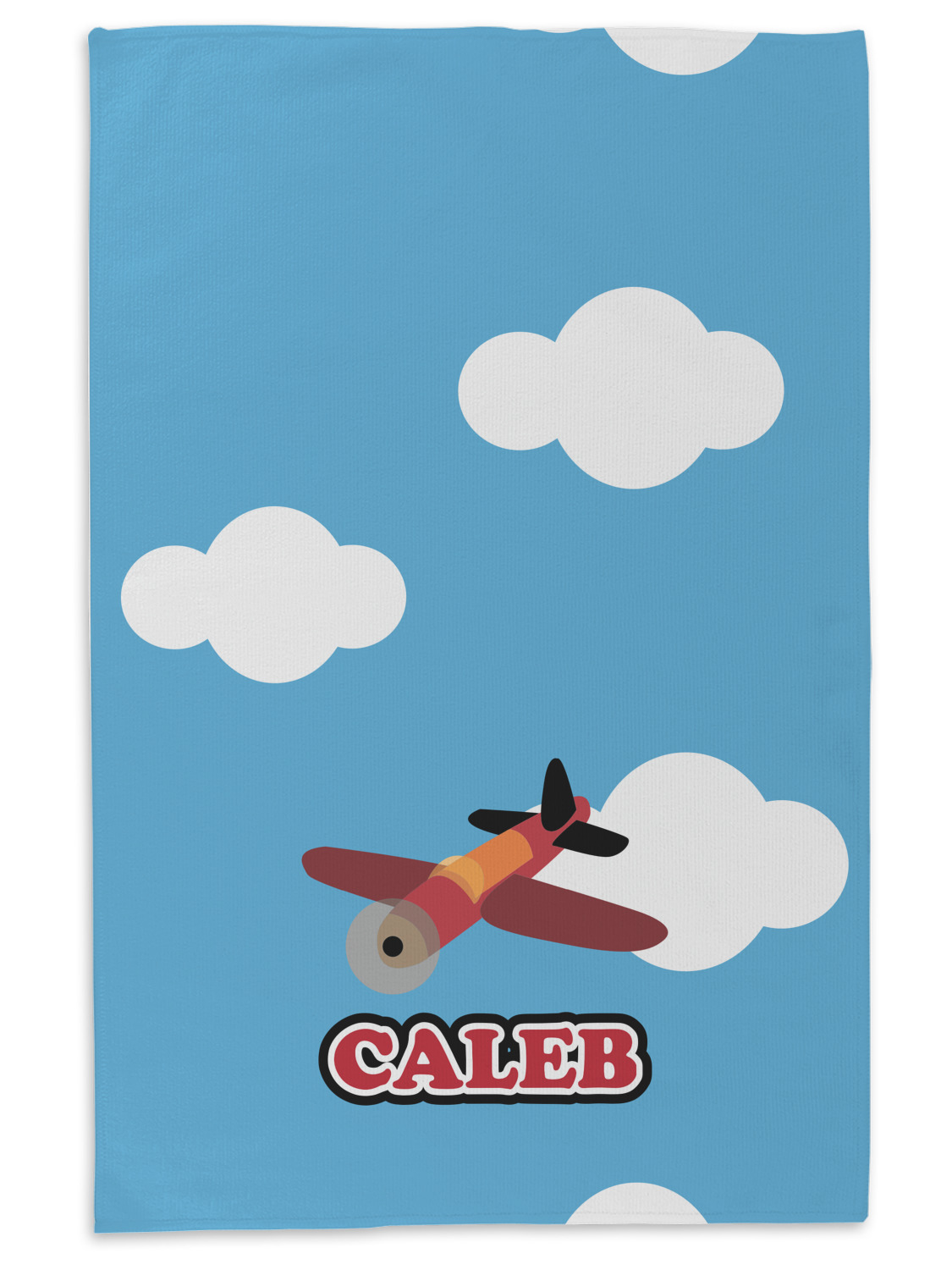 Calling all aviation enthusiast! Soaring through on a backdrop of a beautiful blue cloudy sky is our fun flying plane brightly colored in shades of reds and oranges. Don't forget to add that special touch by customizing the design with the name of your choice.