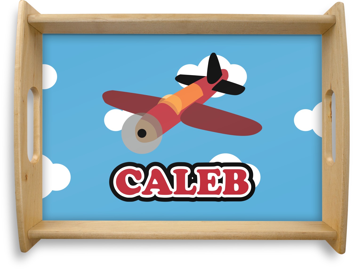 Calling all aviation enthusiast! Soaring through on a backdrop of a beautiful blue cloudy sky is our fun flying plane brightly colored in shades of reds and oranges. Don't forget to add that special touch by customizing the design with the name of your choice.
