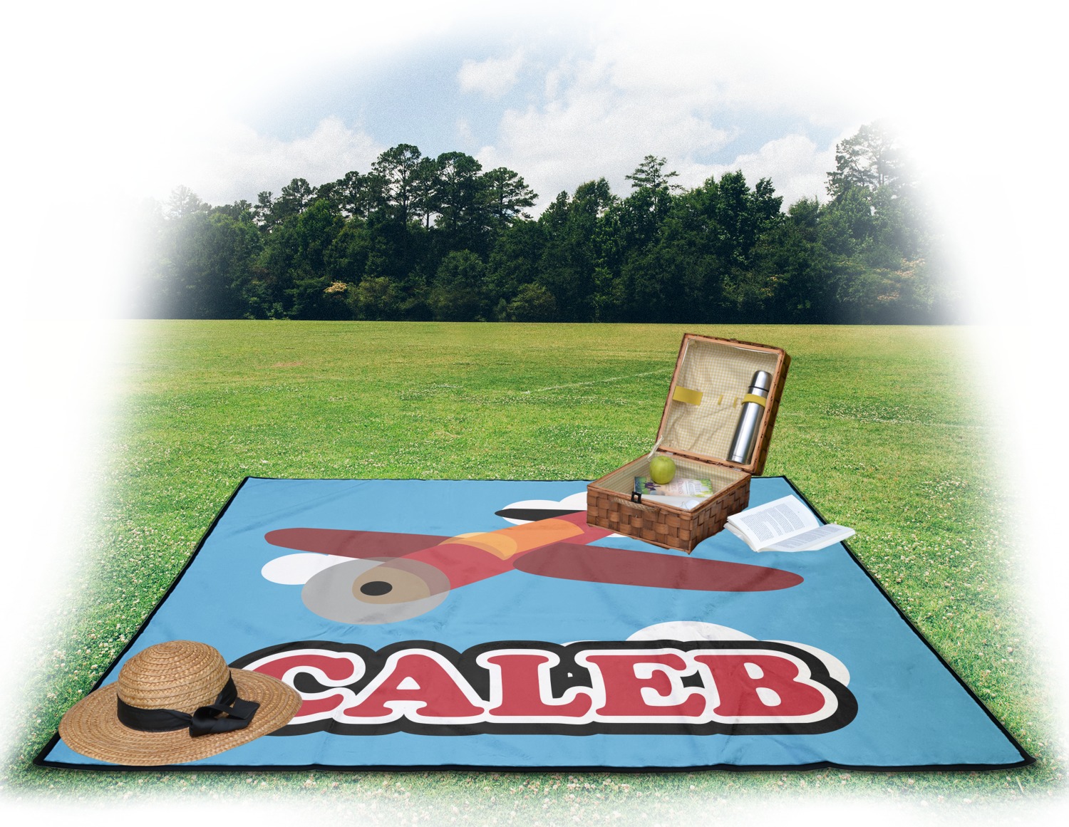 This picnic blanket is perfect for hanging out with your friends at the park or anywhere outside. The top of the blanket is made of a super soft microfiber fleece. The bottom of the blanket is made of a black material similar to a rain jacket and is water repellent as well. This will keep any wet spots on the ground from soaking through your picnic blanket. No one likes a wet blanket. The blanket measures at approximately 50" x 59" and has a nicely finished ribbon edge.