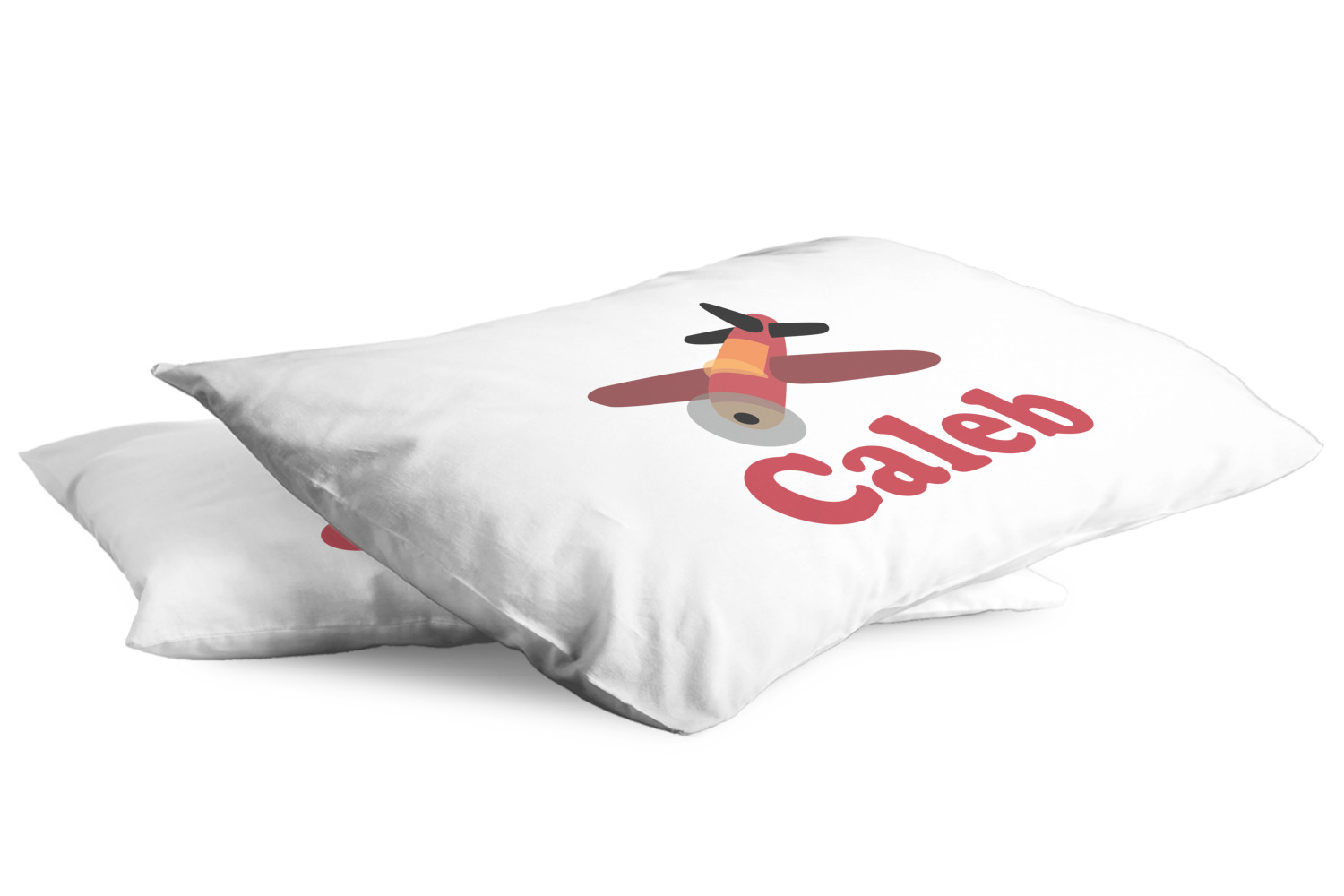 Calling all aviation enthusiast! Soaring through on a backdrop of a beautiful blue cloudy sky is our fun flying plane brightly colored in shades of reds and oranges. Don't forget to add that special touch by customizing the design with the name of your choice.