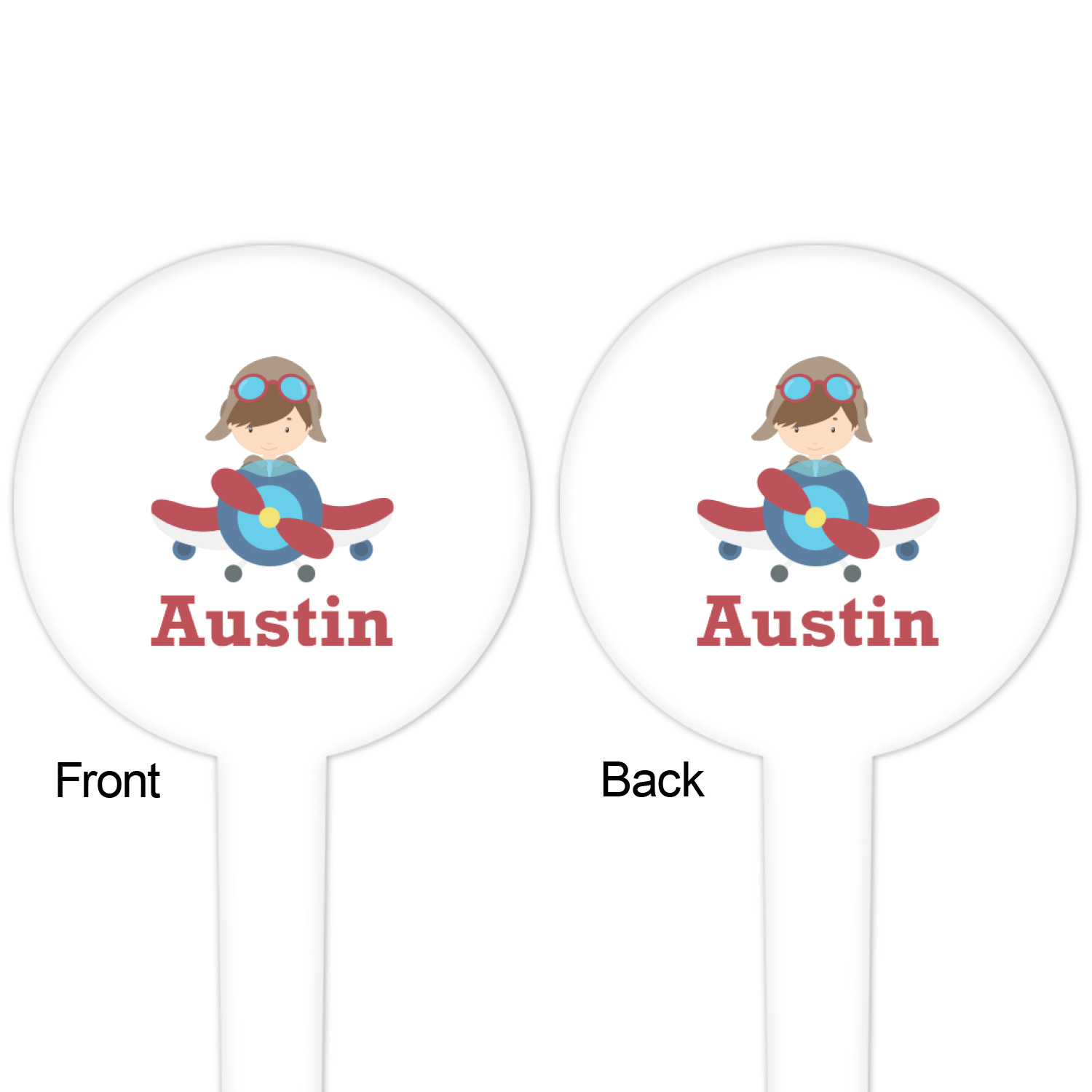 Aviation Designs for 4" Round Plastic Food Picks - White - Double-Sided