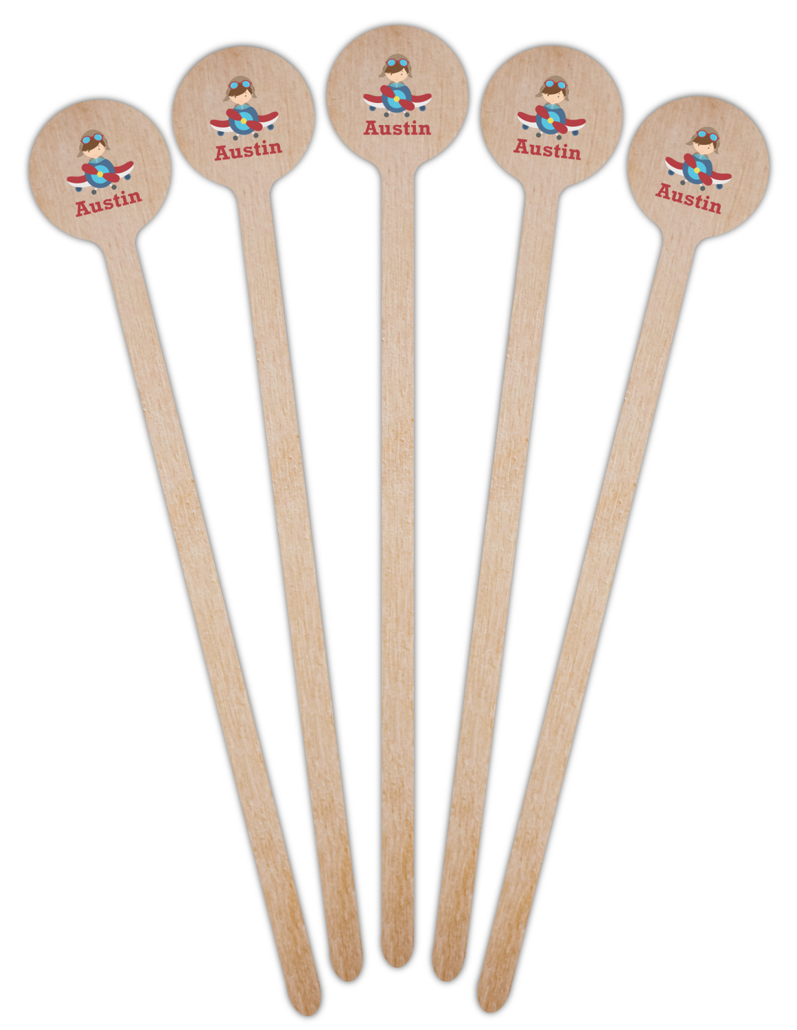 Aviation Designs for 7.5" Round Wooden Stir Sticks - Double-Sided