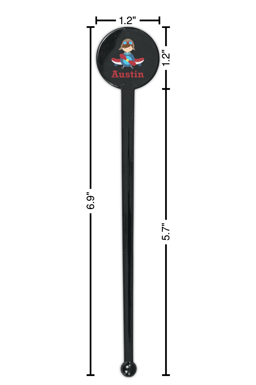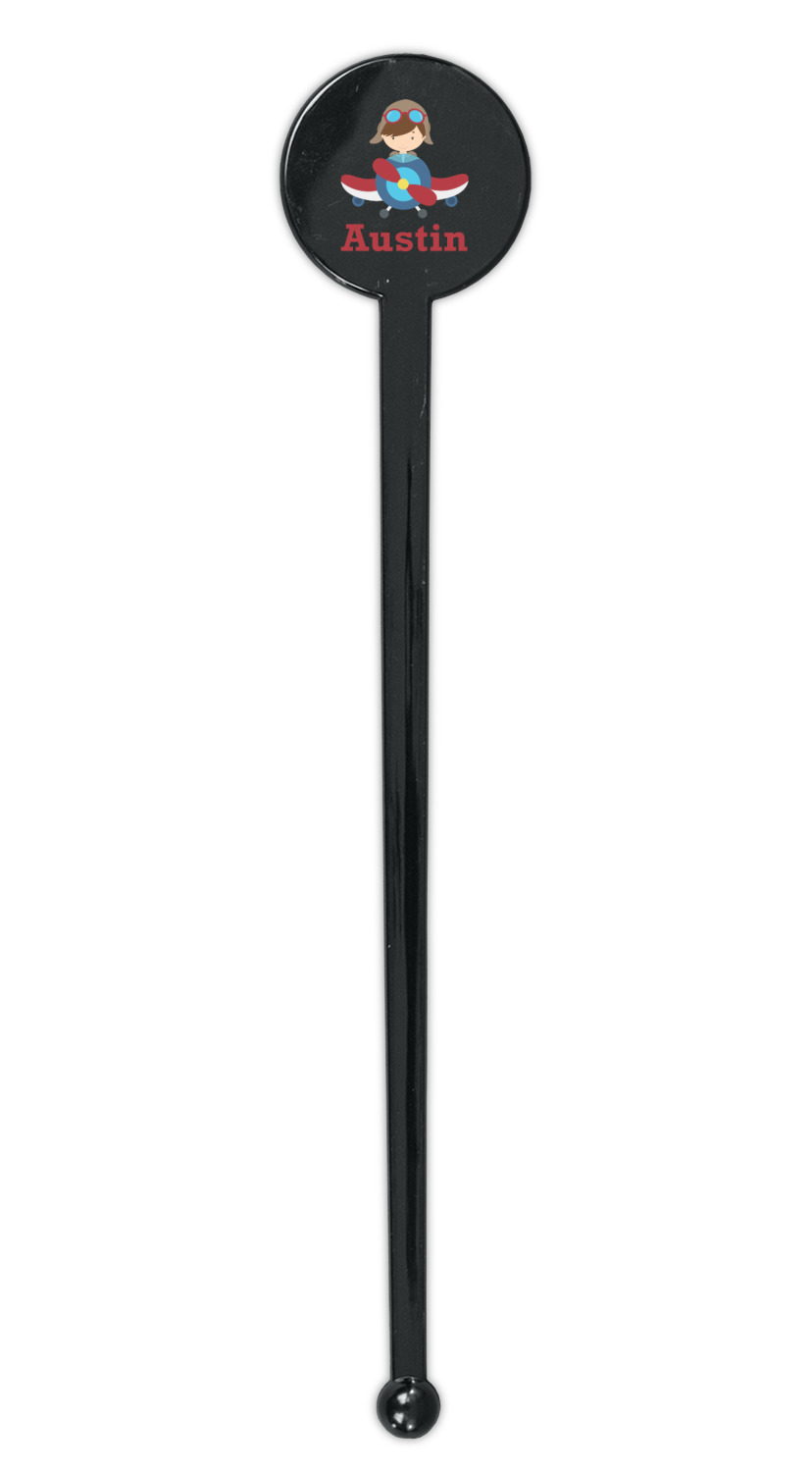 Aviation Designs for 7" Round Plastic Stir Sticks - Black - Single-Sided