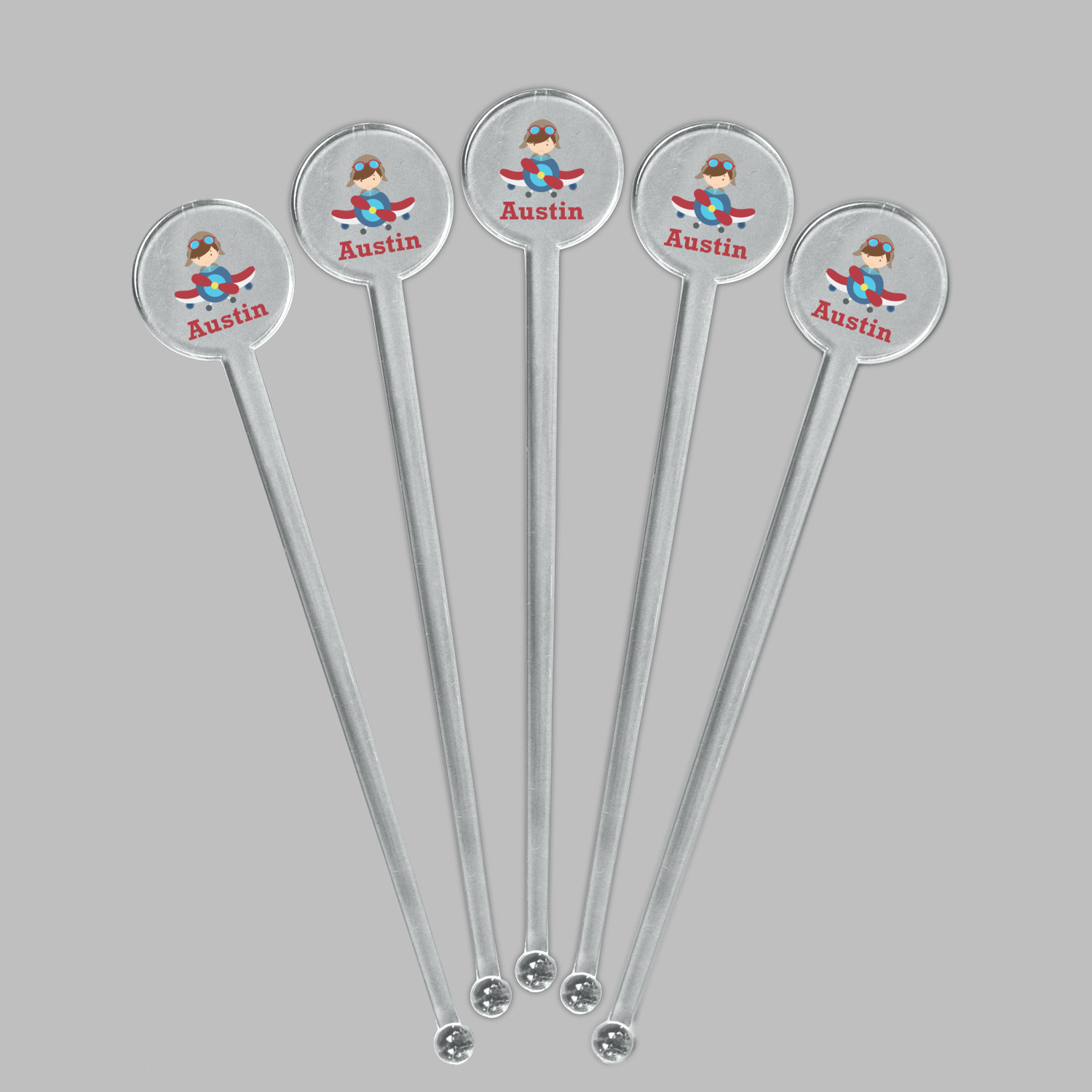 Aviation Designs for 7" Round Plastic Stir Sticks - Clear