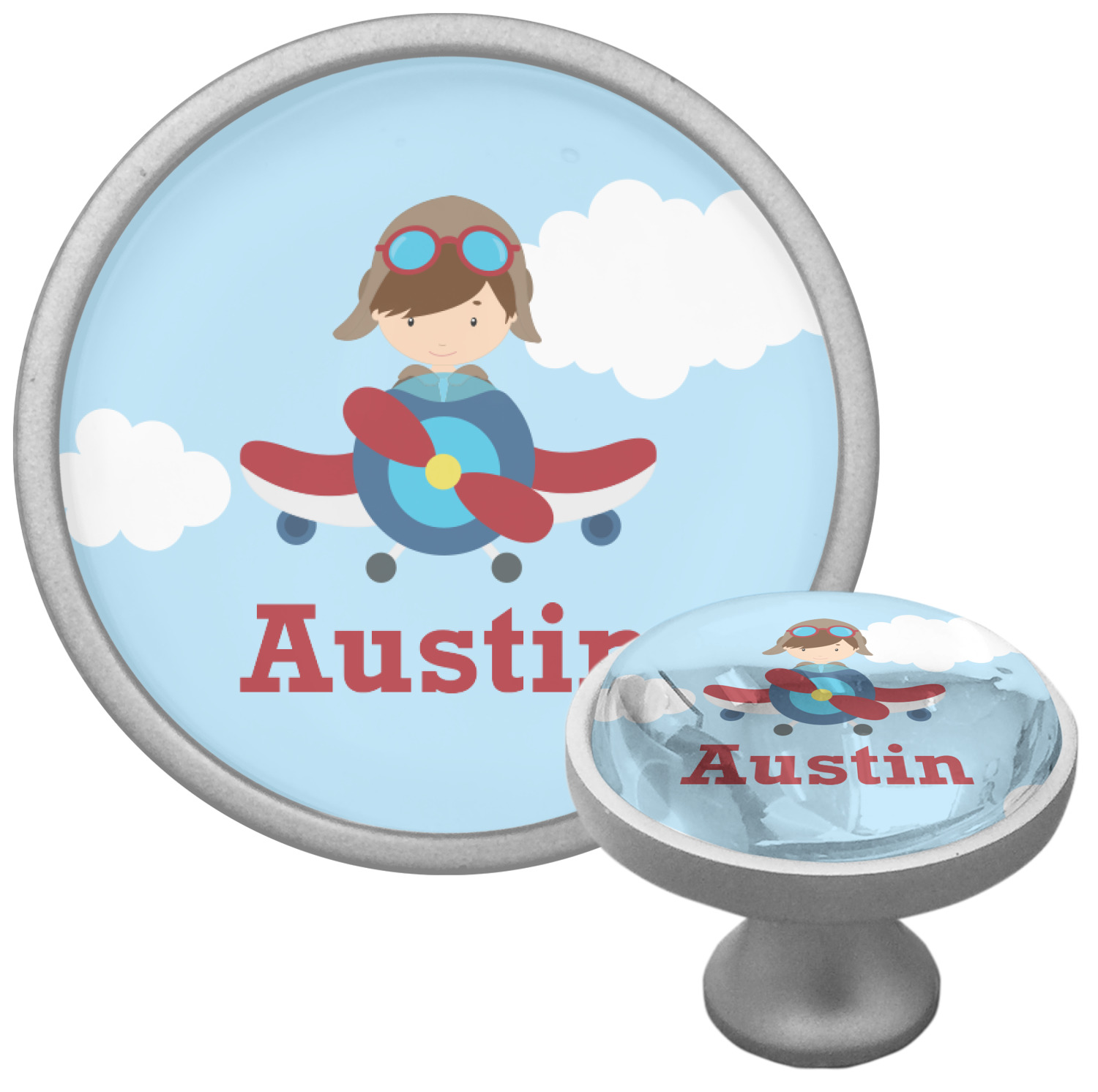 Do you have a little man that loves planes? Soaring through on a backdrop of a beautiful blue cloudy sky is our fun flying aviator piloting his own personal plane brightly colored in shades of red and blues. Don't forget to add that special touch by customizing the design with your little guy's name.