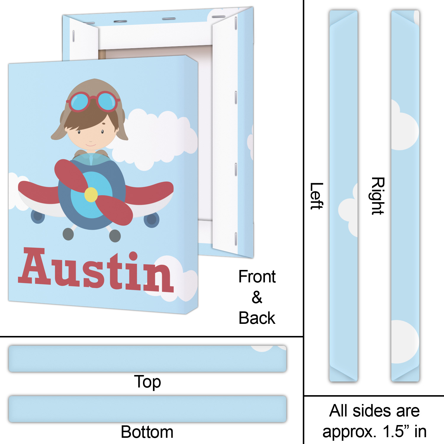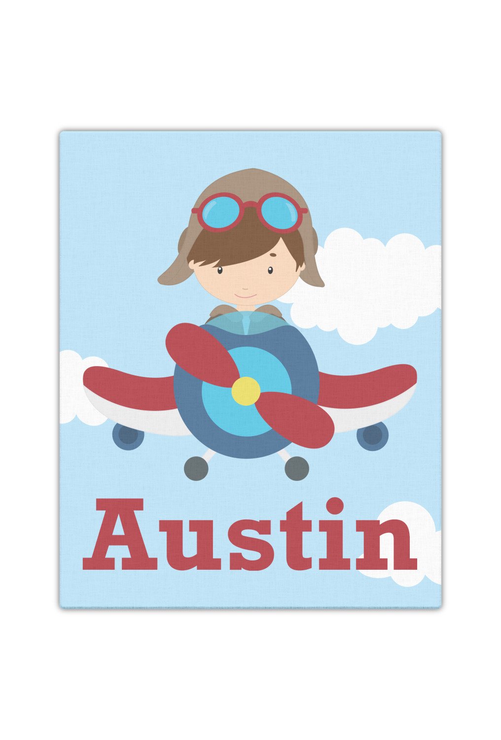Do you have a little man that loves planes? Soaring through on a backdrop of a beautiful blue cloudy sky is our fun flying aviator piloting his own personal plane brightly colored in shades of red and blues. Don't forget to add that special touch by customizing the design with your little guy's name.