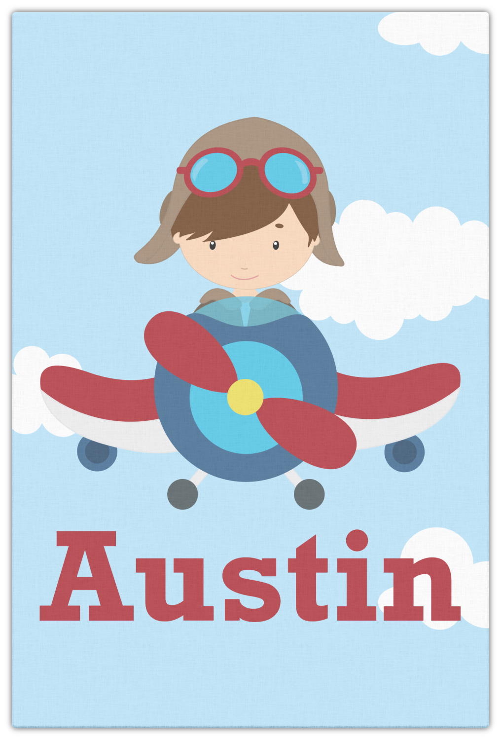 Do you have a little man that loves planes? Soaring through on a backdrop of a beautiful blue cloudy sky is our fun flying aviator piloting his own personal plane brightly colored in shades of red and blues. Don't forget to add that special touch by customizing the design with your little guy's name.