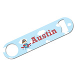Do you have a little man that loves planes? Soaring through on a backdrop of a beautiful blue cloudy sky is our fun flying aviator piloting his own personal plane brightly colored in shades of red and blues. Don't forget to add that special touch by customizing the design with your little guy's name.