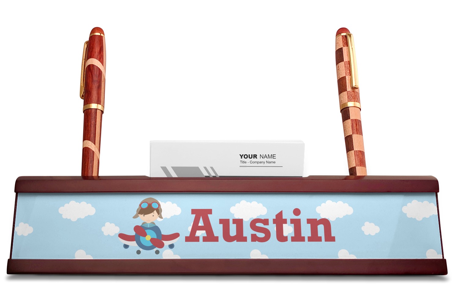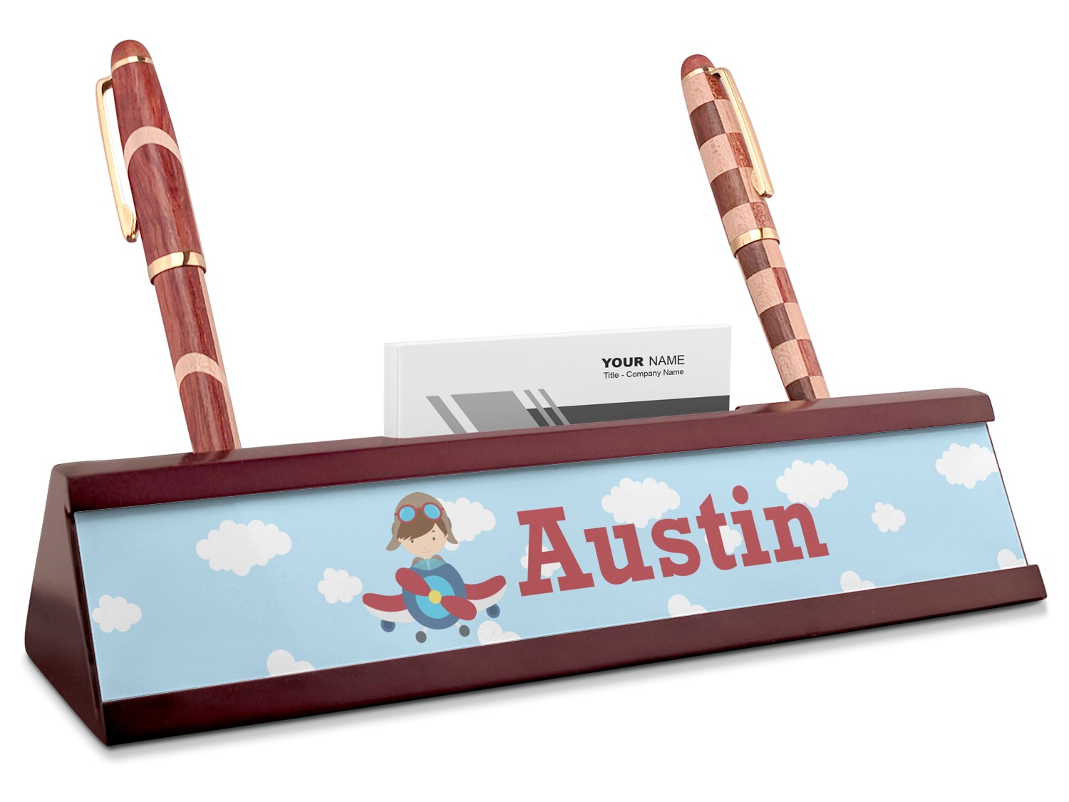 Aviation Designs for Red Mahogany Nameplates with Business Card Holder