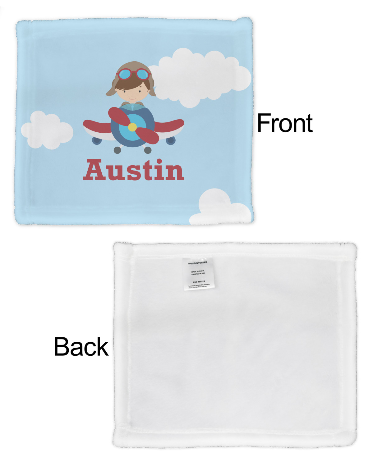 Crafted from an ultra soft fleece, these lovey blankets are the perfect, portable size to follow your child on any of his or her adventures. The plush texture also makes them ideal for naptime. Each personalized baby blanket measures at approximately 12 by 11 inches.