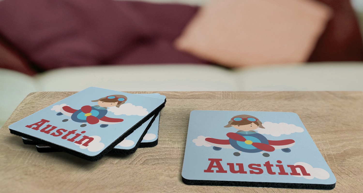 Planes Designs for Square Rubber Backed Coasters - Set of 4