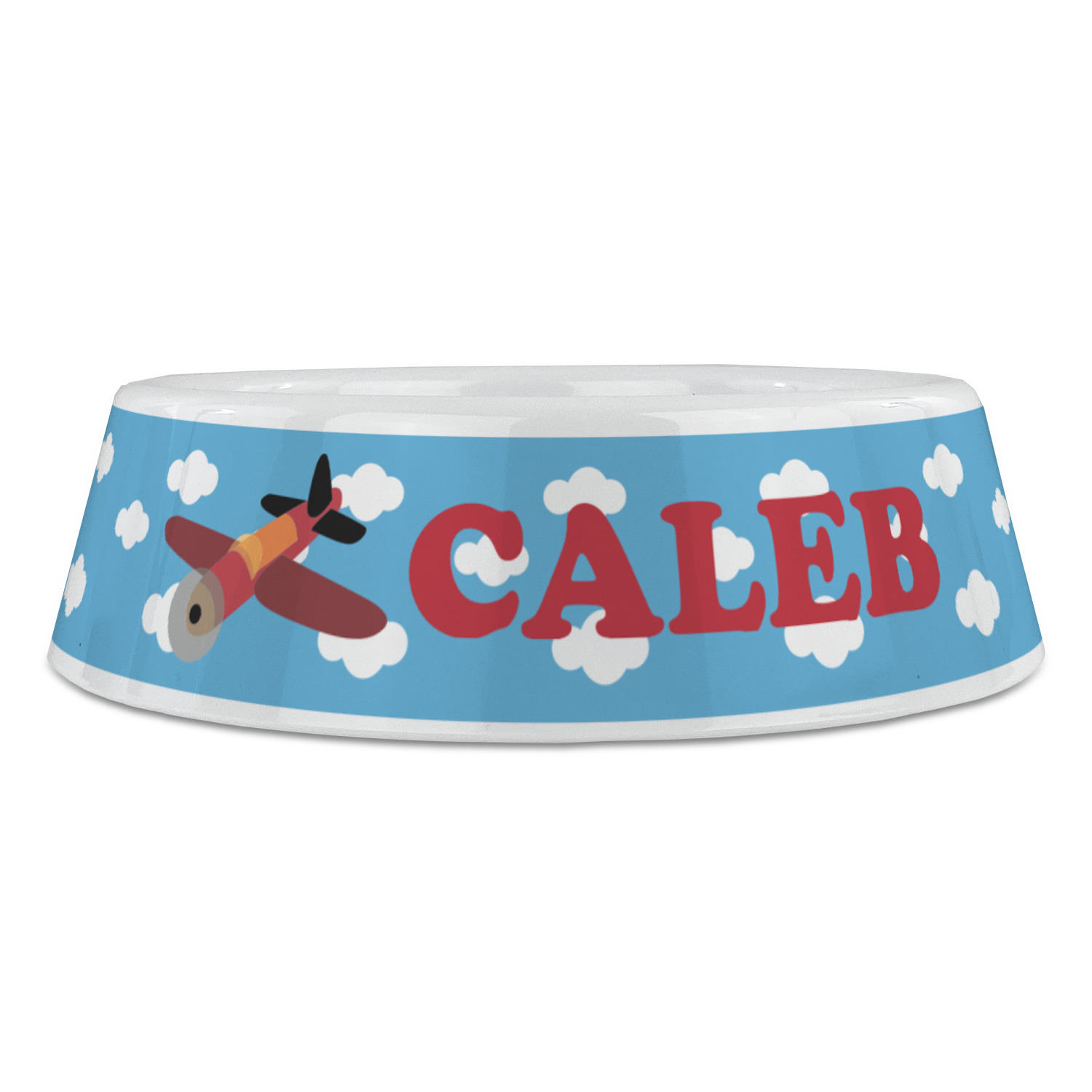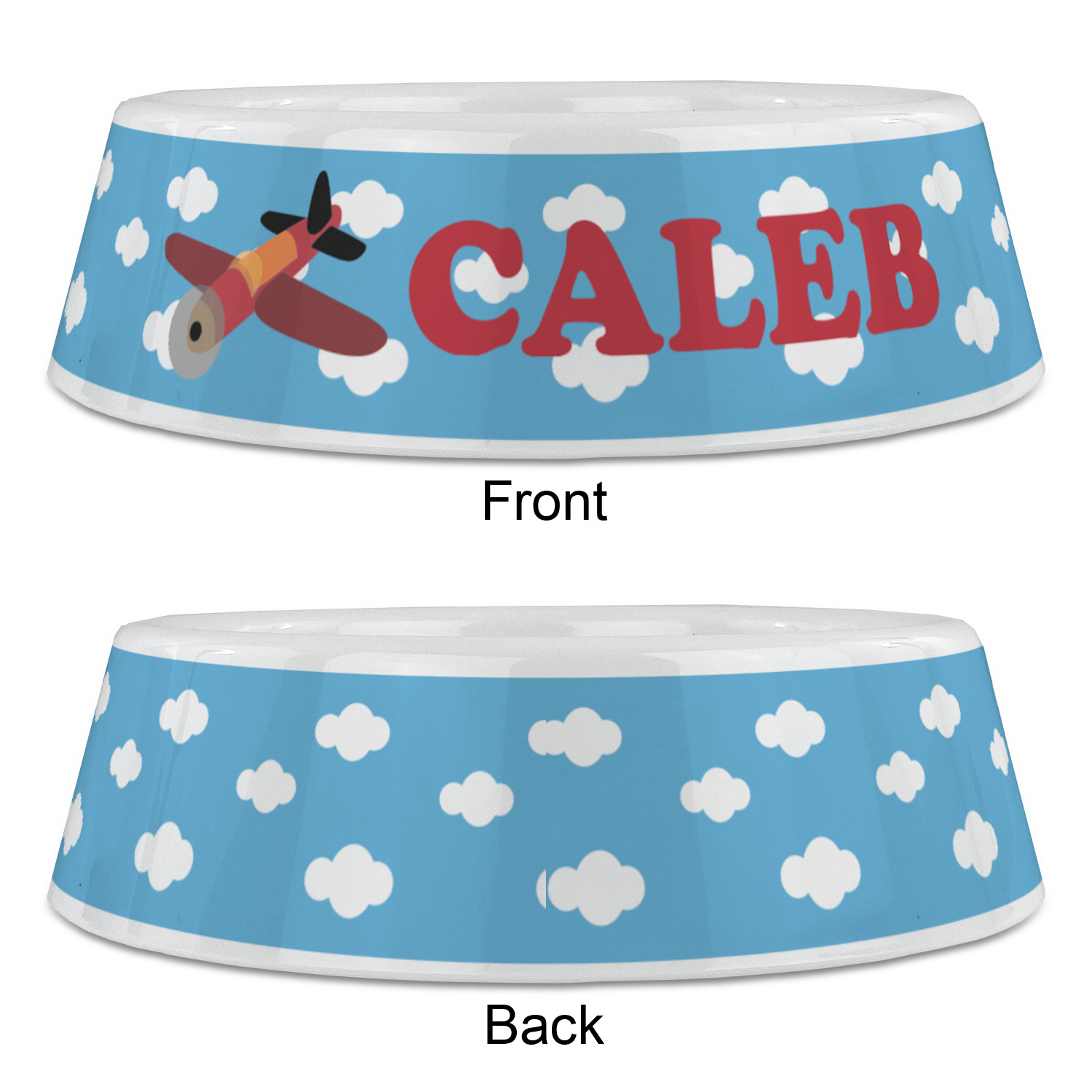 Calling all aviation enthusiast! Soaring through on a backdrop of a beautiful blue cloudy sky is our fun flying plane brightly colored in shades of reds and oranges. Don't forget to add that special touch by customizing the design with the name of your choice.