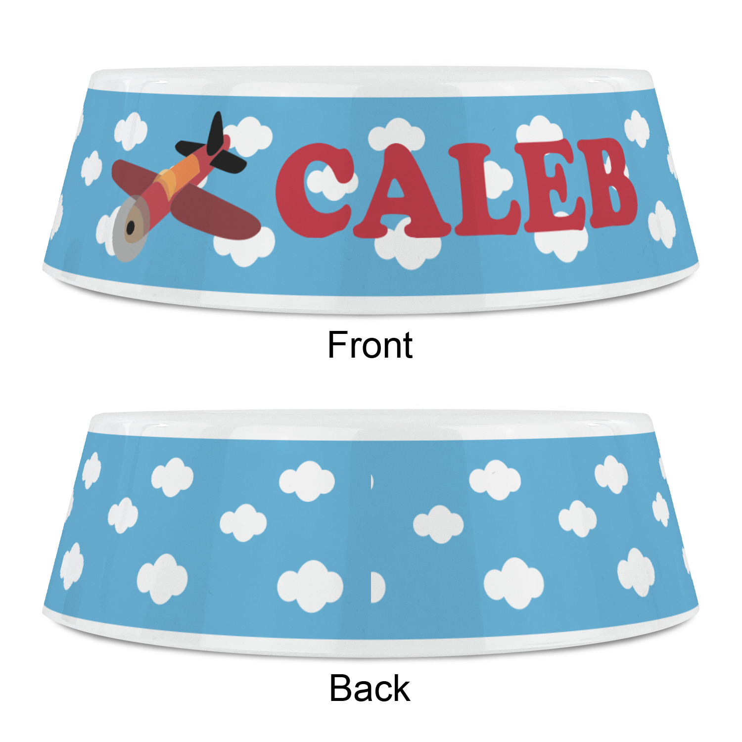 Calling all aviation enthusiast! Soaring through on a backdrop of a beautiful blue cloudy sky is our fun flying plane brightly colored in shades of reds and oranges. Don't forget to add that special touch by customizing the design with the name of your choice.