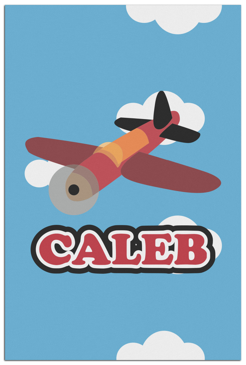 Calling all aviation enthusiast! Soaring through on a backdrop of a beautiful blue cloudy sky is our fun flying plane brightly colored in shades of reds and oranges. Don't forget to add that special touch by customizing the design with the name of your choice.