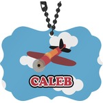 Calling all aviation enthusiast! Soaring through on a backdrop of a beautiful blue cloudy sky is our fun flying plane brightly colored in shades of reds and oranges. Don't forget to add that special touch by customizing the design with the name of your choice.