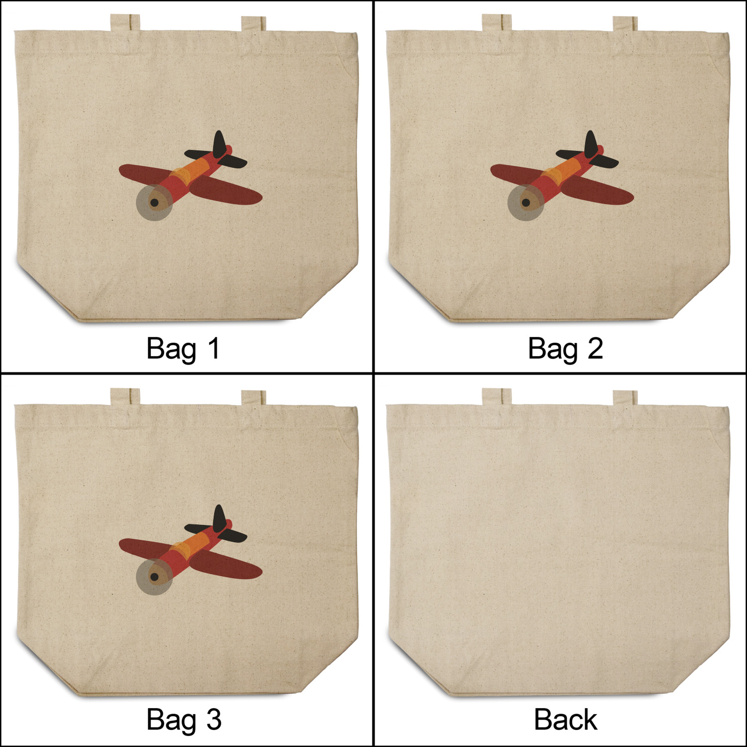 Planes Designs for Reusable Cotton Grocery Bags - Set of 3