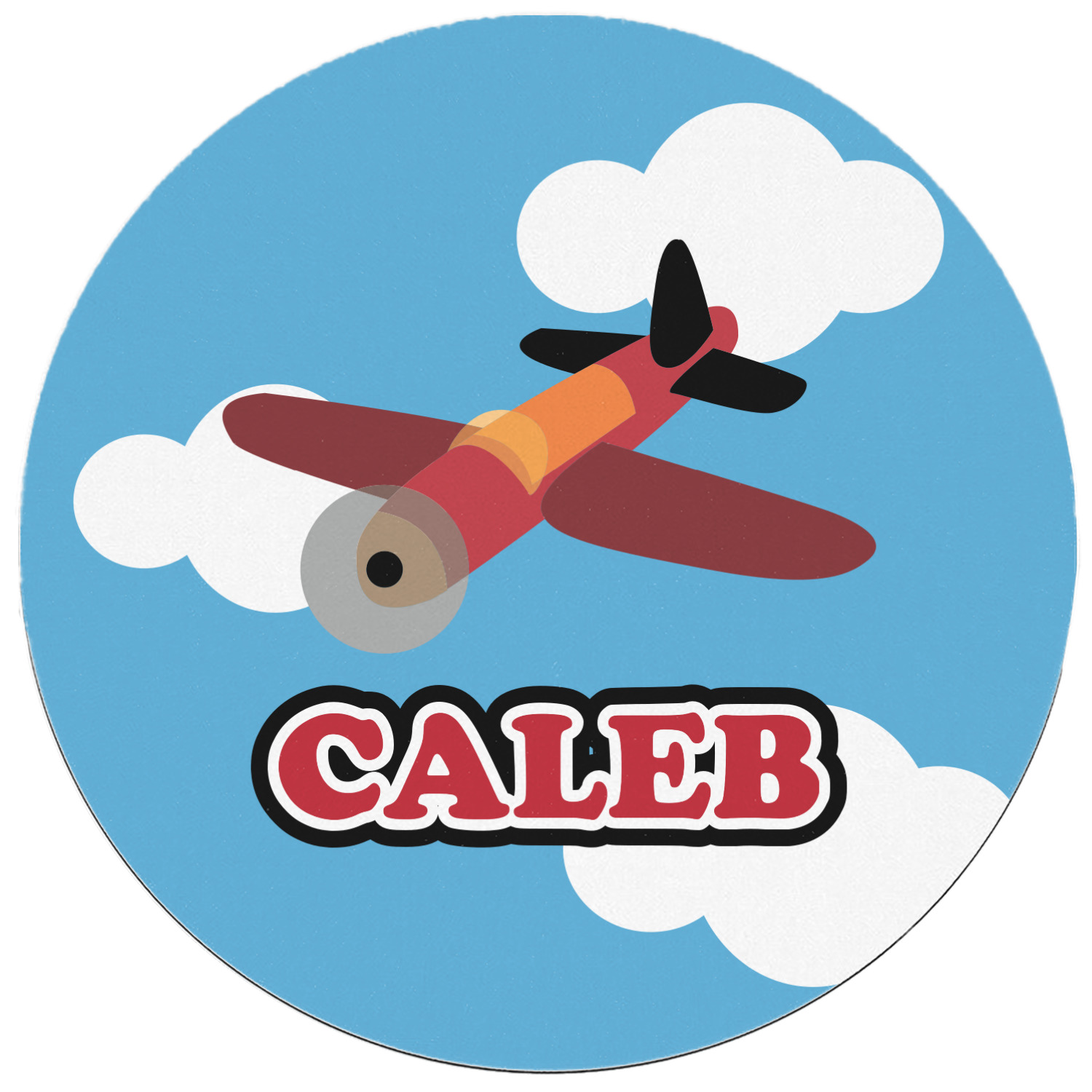 Calling all aviation enthusiast! Soaring through on a backdrop of a beautiful blue cloudy sky is our fun flying plane brightly colored in shades of reds and oranges. Don't forget to add that special touch by customizing the design with the name of your choice.