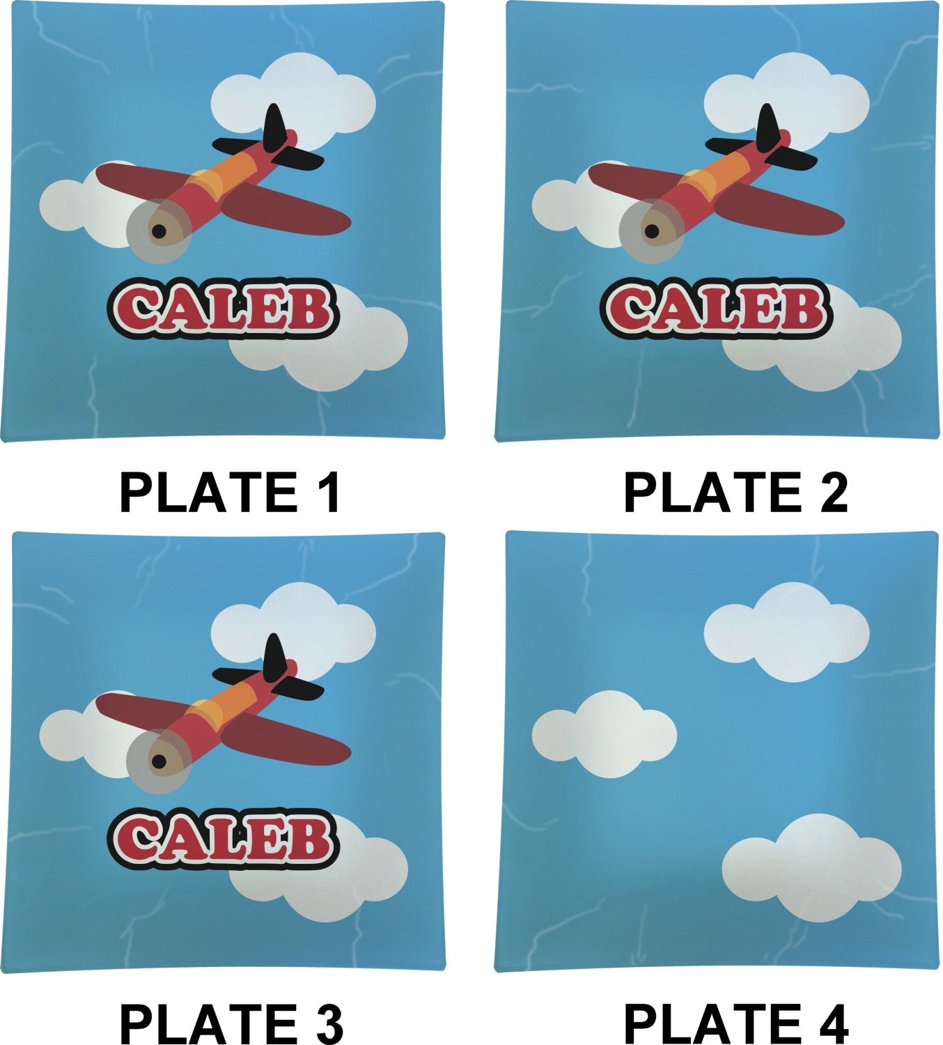 Planes Designs for Glass Square Lunch / Dinner Plates 9.5" - Set of 4