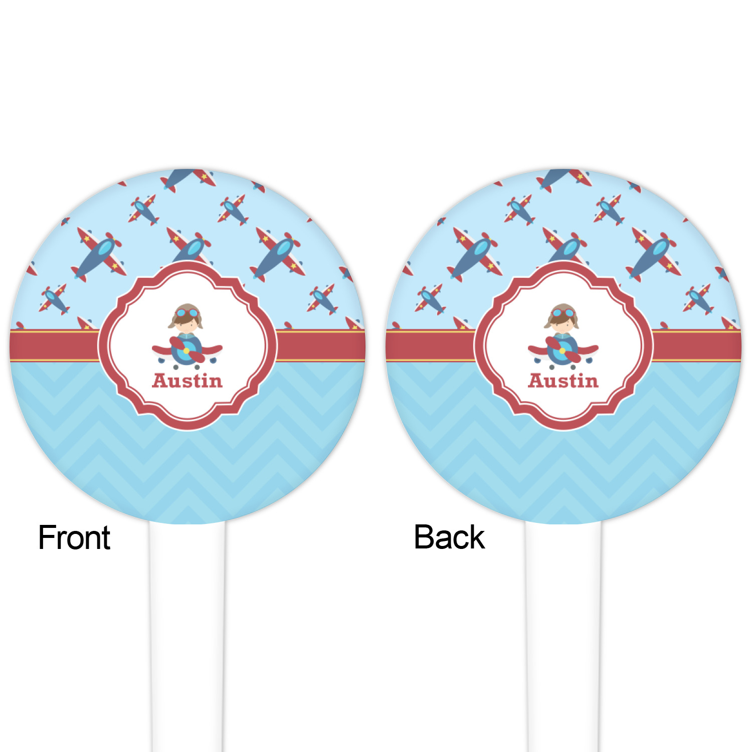 Aviation Designs for 4" Round Plastic Food Picks - White - Double-Sided