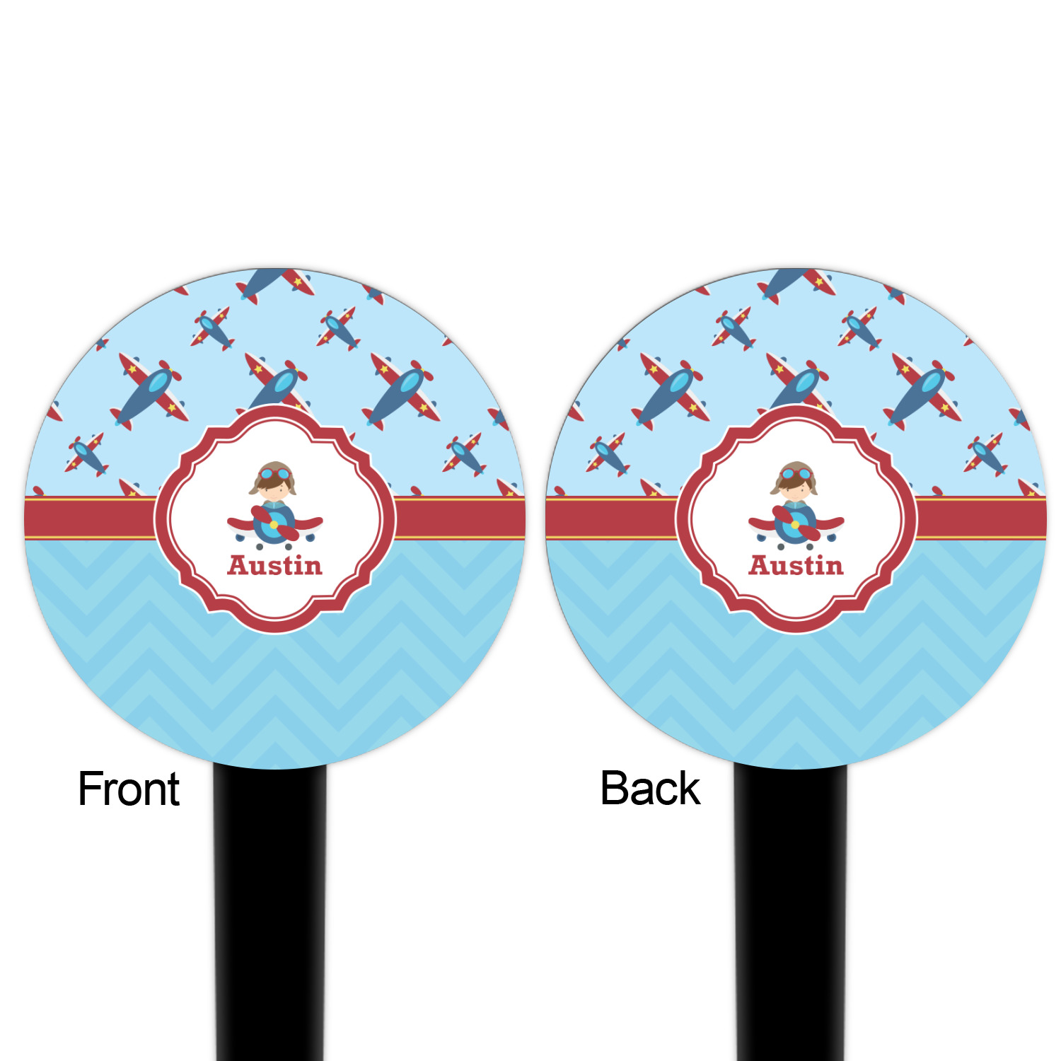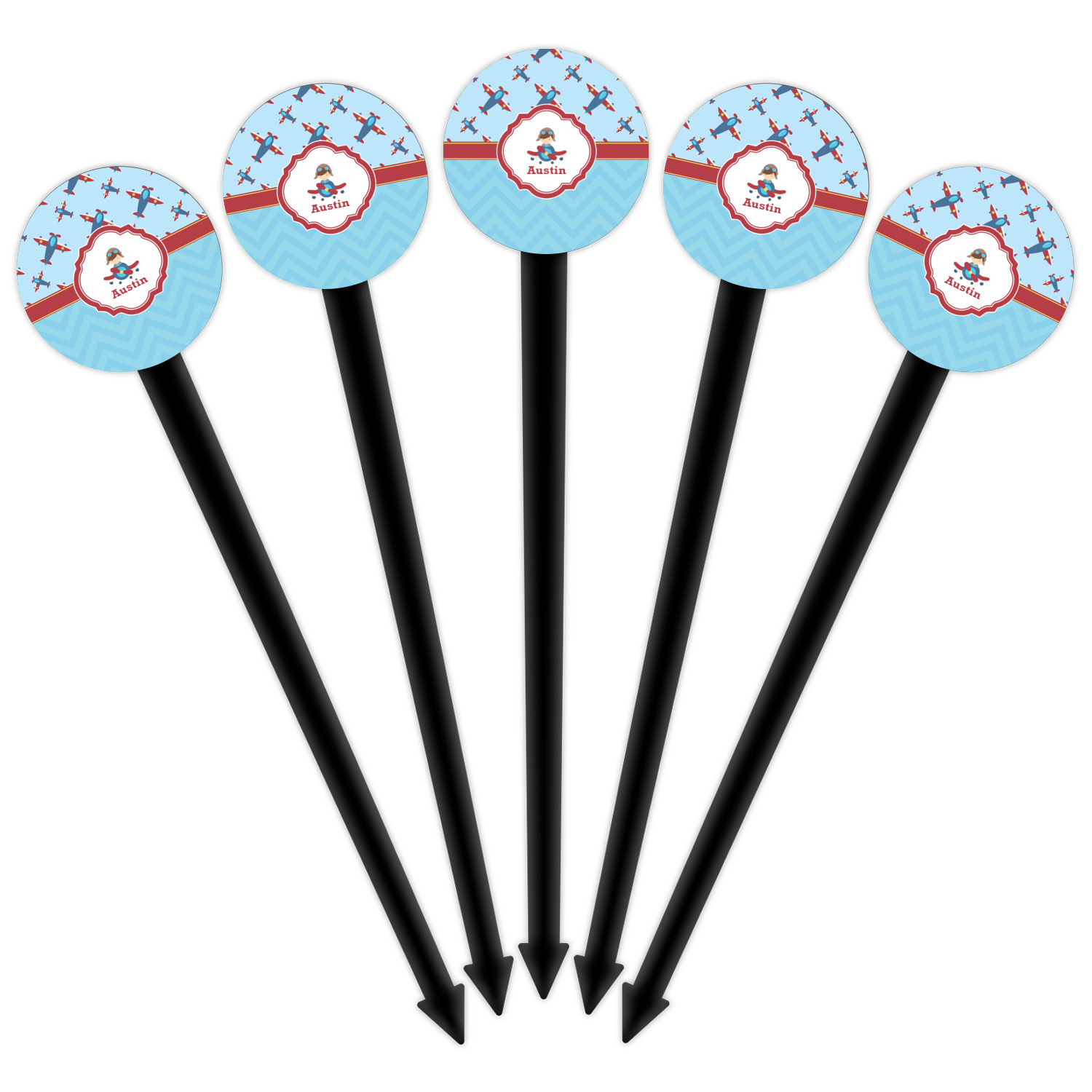 Planes Designs for 6" Round Plastic Food Picks - Black - Double-Sided