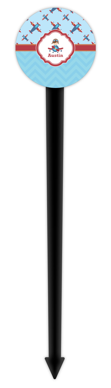 Aviation Designs for 6" Round Plastic Food Picks - Black - Double-Sided