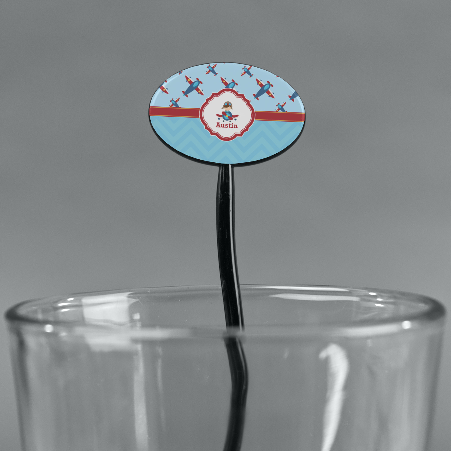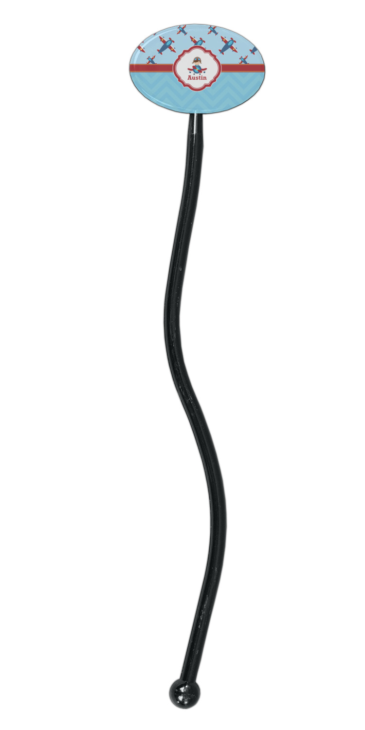 Planes Designs for 7" Oval Plastic Stir Sticks - Black - Double-Sided