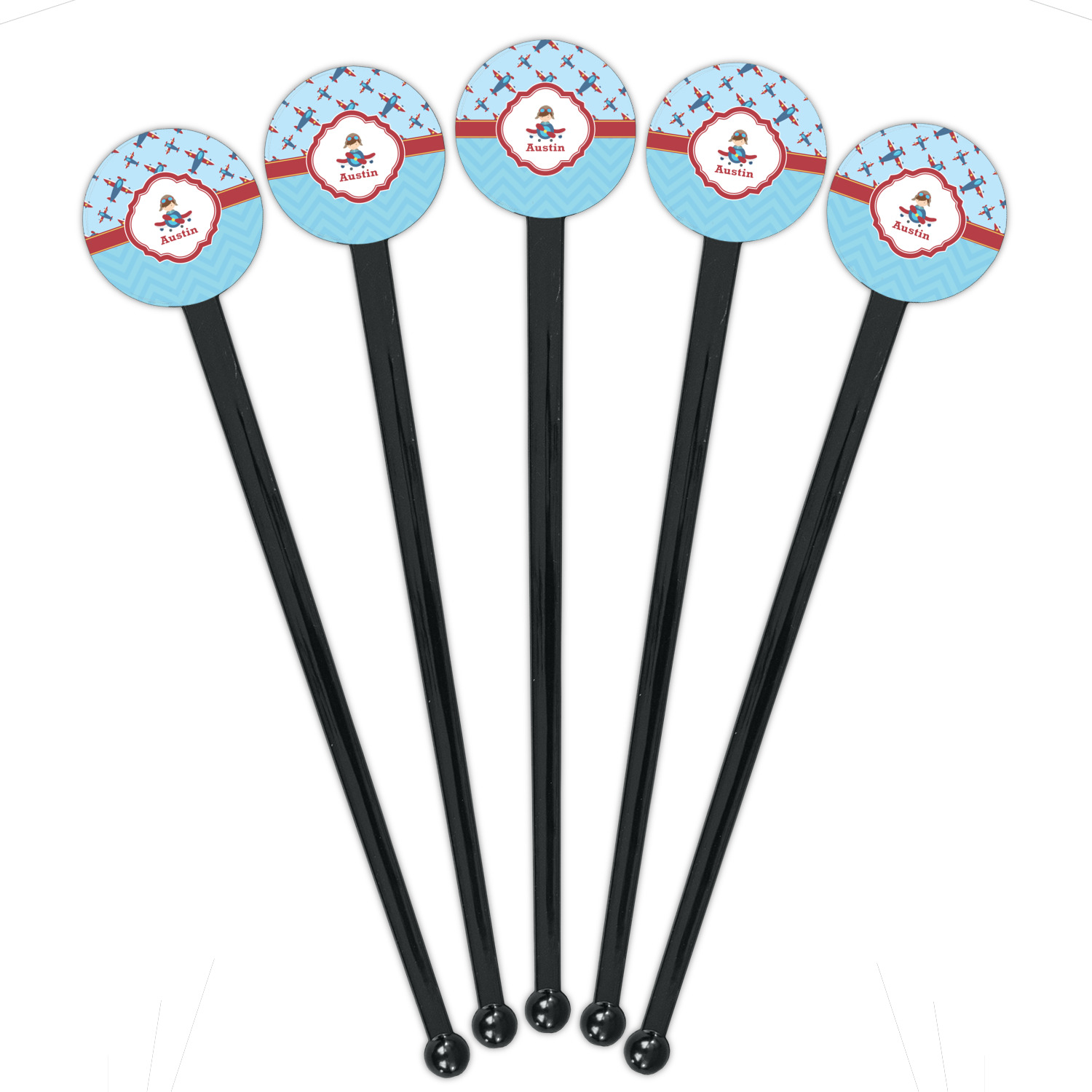 Aviation Designs for 7" Round Plastic Stir Sticks - Black - Single-Sided