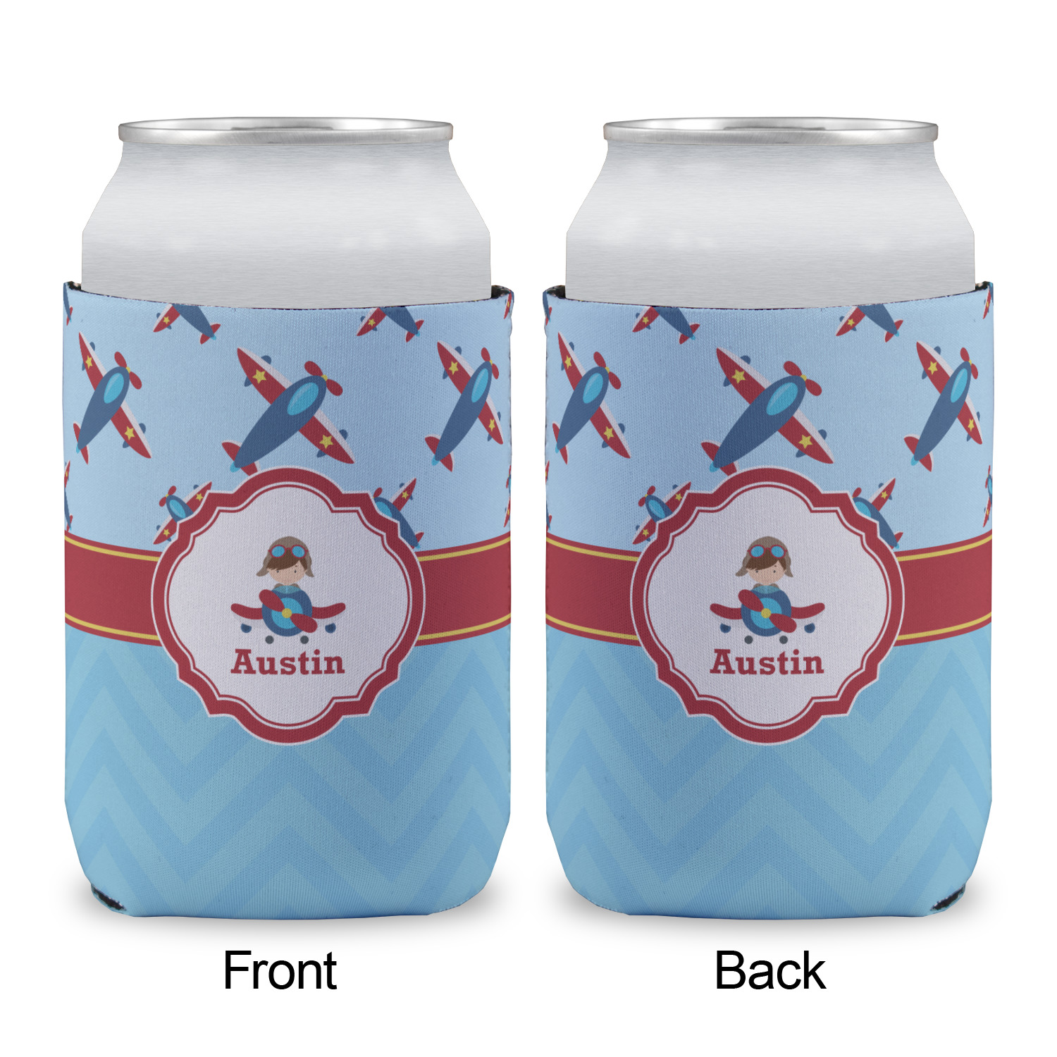 This Airplane themed design features a little pilot in his own plane with his name just below it within a red and yellow frame. The design also features planes in the sky above and blue chevron stripes below with a red stripe to tie it all together.