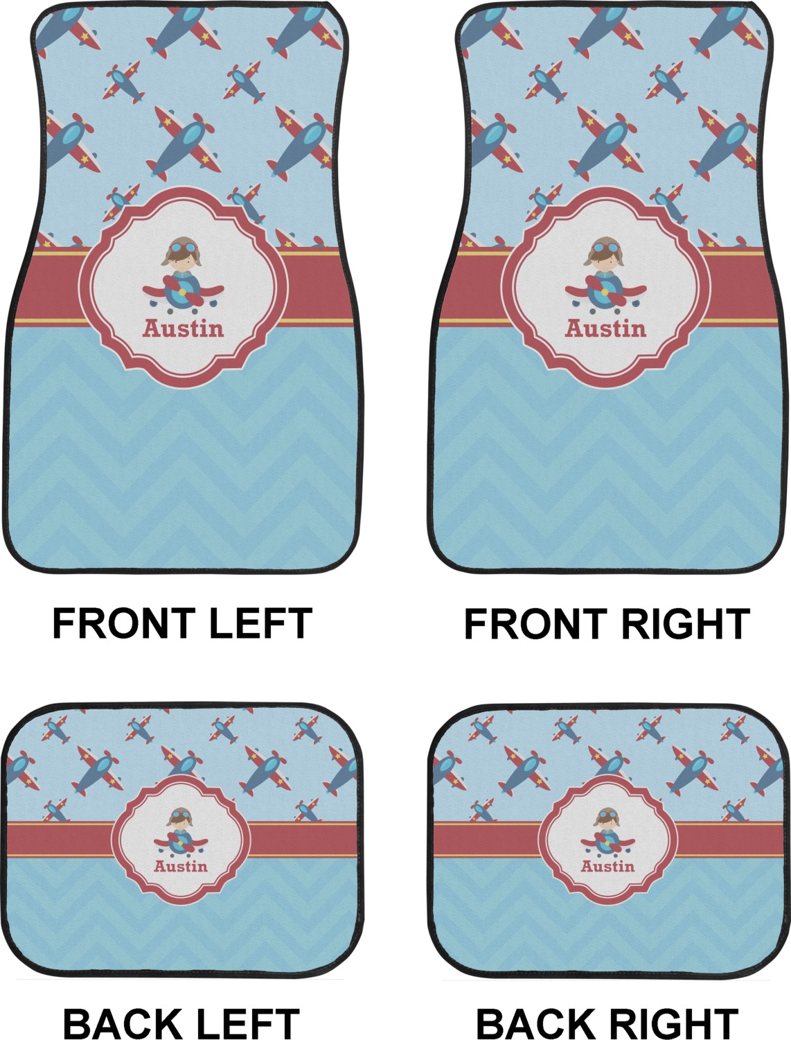 We craft our auto floor mats mats from polyester, apply a black finish to the edges, and lined at the bottom to prevent slippage. These mats protect your floors from grass, mud, and any accidental spills. We display your personalized design on the front face of each mat. The sizes of these car floor liners are standardized to provide a versatile fit for all vehicles. The front rows car mats measure at 17 by 26.5 inches, while the back rows measure at 17 by 13 inches. We sell three packages of car floor mats. You can purchase a pair of front row car mats, a pair of back row car mats, or a set of front row and back row car mats. To make an informed purchase, we recommend measuring the surface area of your car floors.