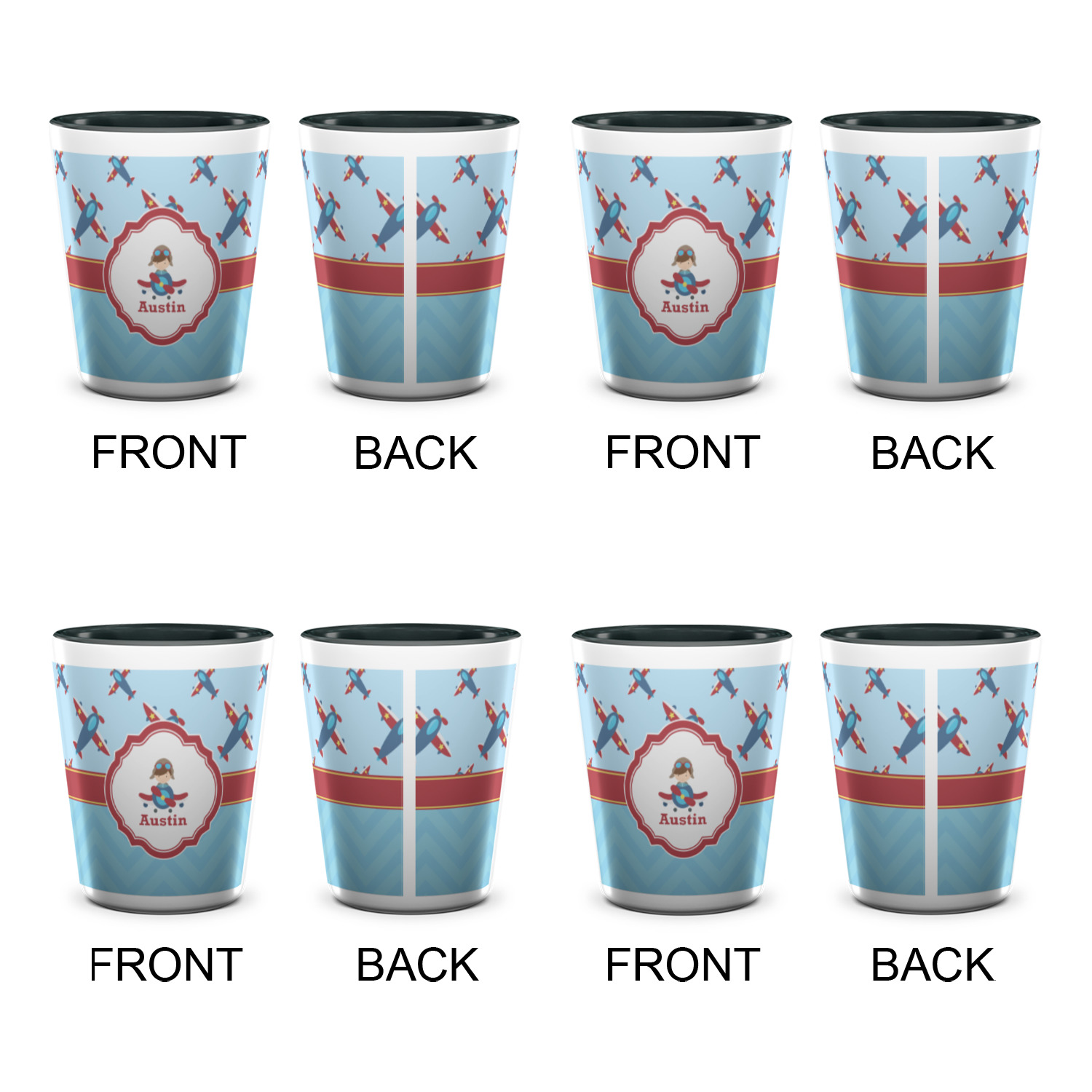 Planes Designs for Ceramic Shot Glasses - 1.5 oz - Two Tone - Set of 4