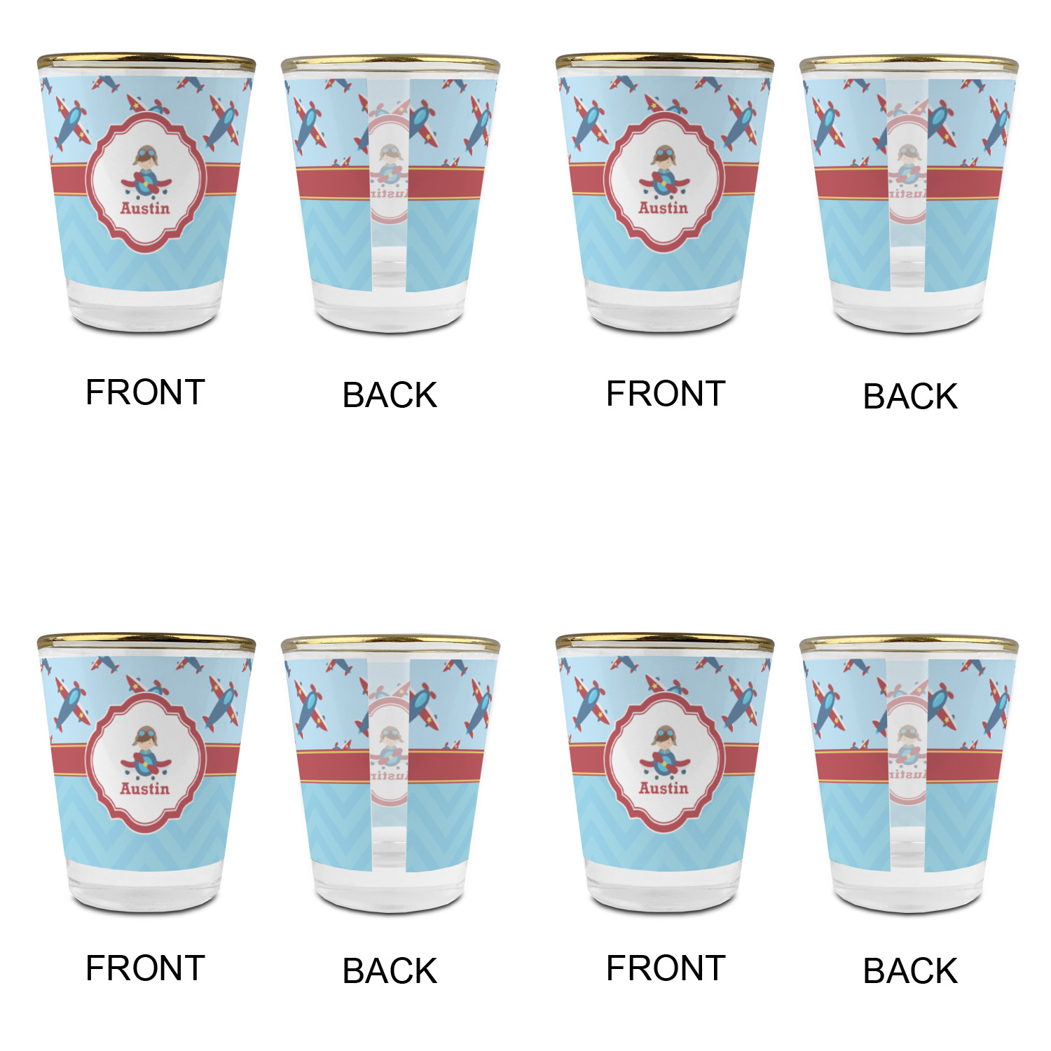 Aviation Designs for Glass Shot Glasses - 1.5 oz - with Gold Rim - Set of 4