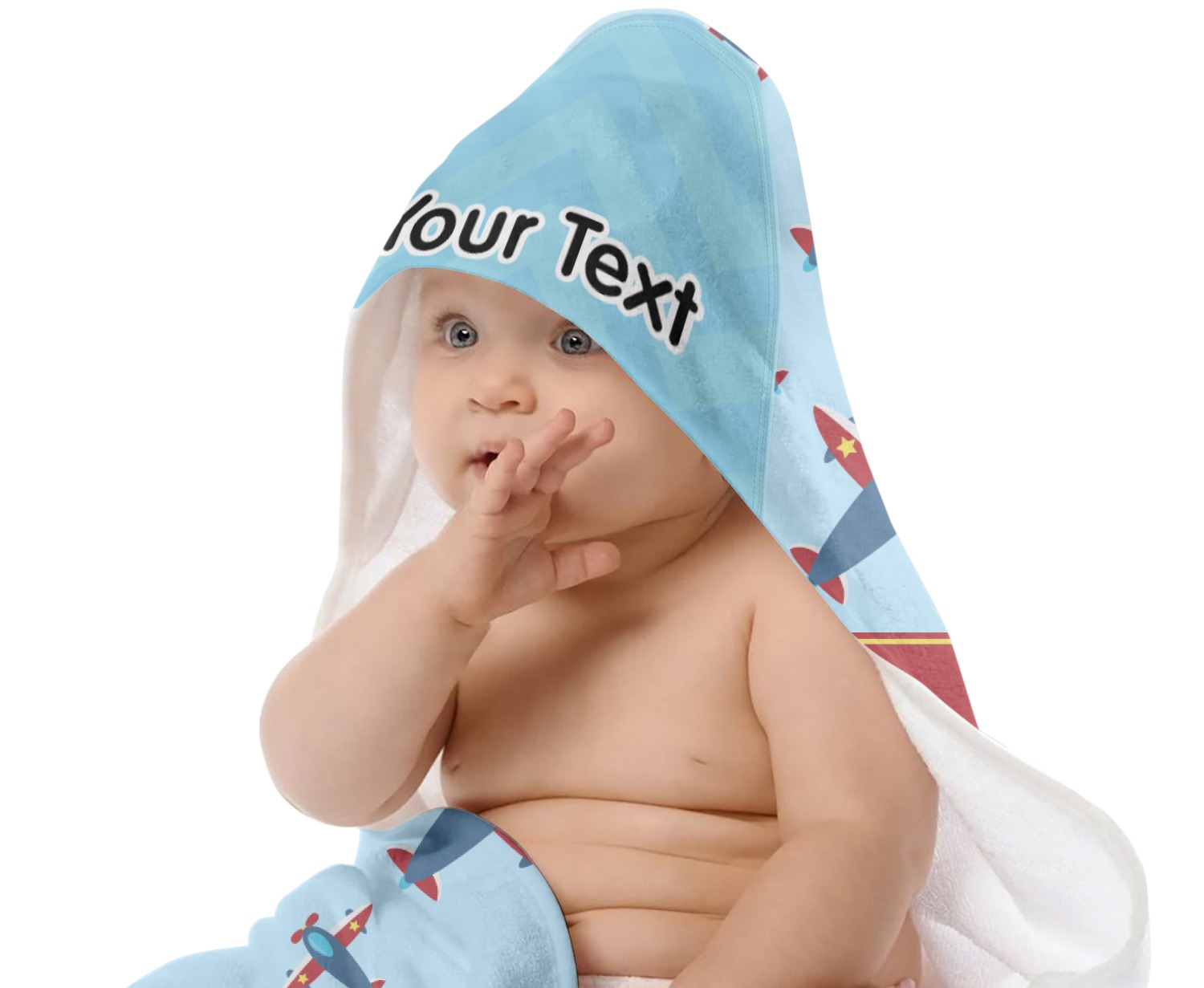 This baby towel is made with a plush microfiber velour and cotton terry. and thus will be soft and gentle against your newborn's skin, but also, very absorbent. Your customization is printed across the front & the hood, while the inside is a classy white.