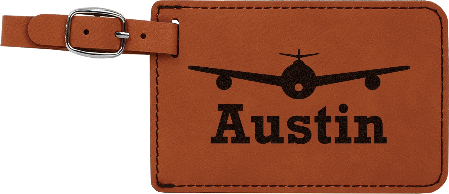 This luggage tag will surely be able to get you started in having all the right tools for traveling. It is made of a beautiful leatherette material that is a nice shade of cognac brown. The front of the tag is where your design goes. The sturdy black stitching gives your design an extra pop and gives the tag extra durability. The back of the tag has a clear vinyl window where you can slip in your address card. The tag comes with a great little buckle strap that you can easily use to clip to your suitcase. The tag itself measures at approximately 5.5"W x 4.25"H.