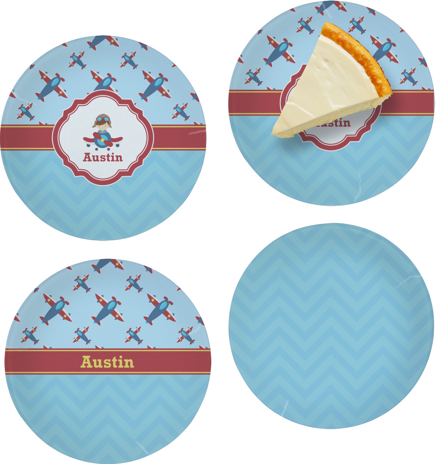 Planes Designs for Glass Appetizer / Dessert Plates 8" - Set of 4