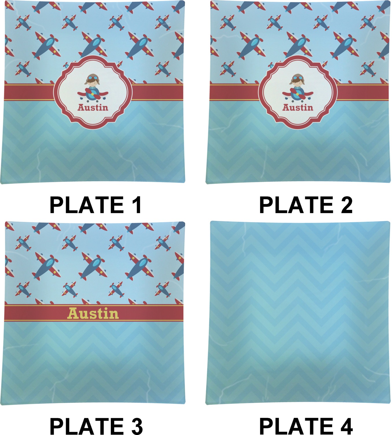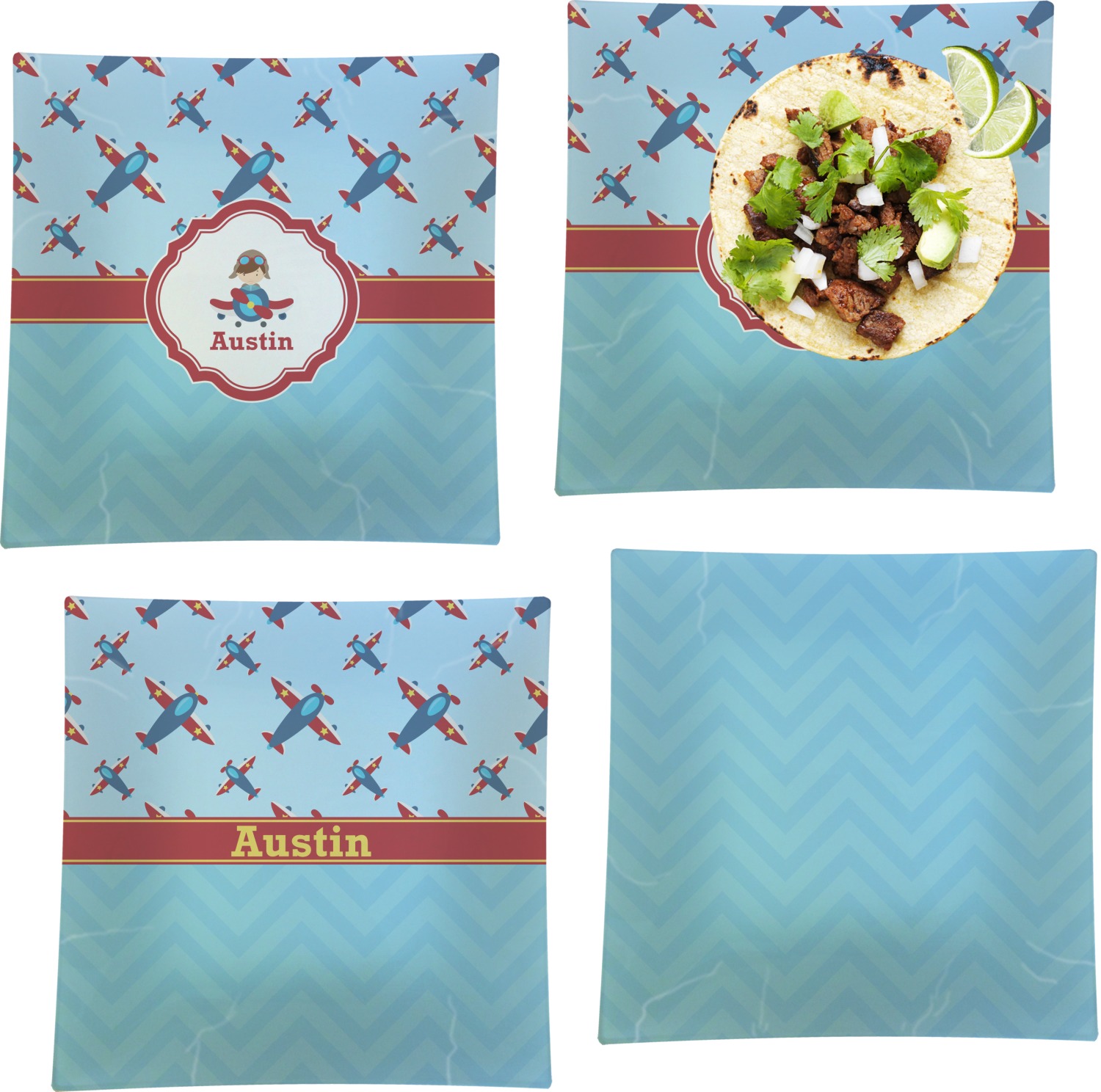 Planes Designs for Glass Square Lunch / Dinner Plates 9.5" - Set of 4