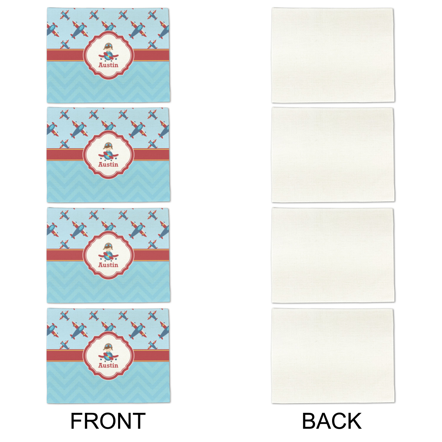 Planes Designs for Single-Sided Linen Placemats - Set of 4
